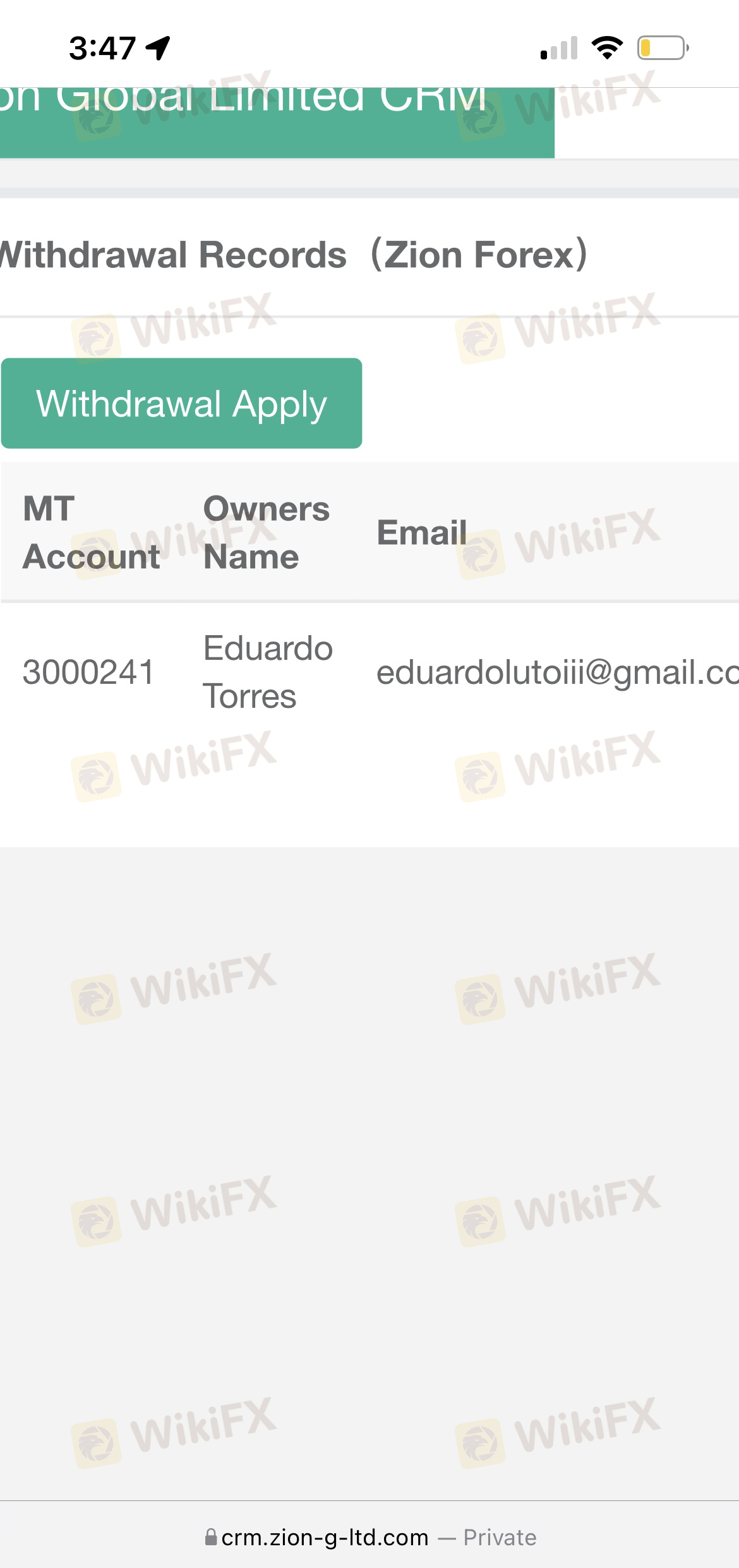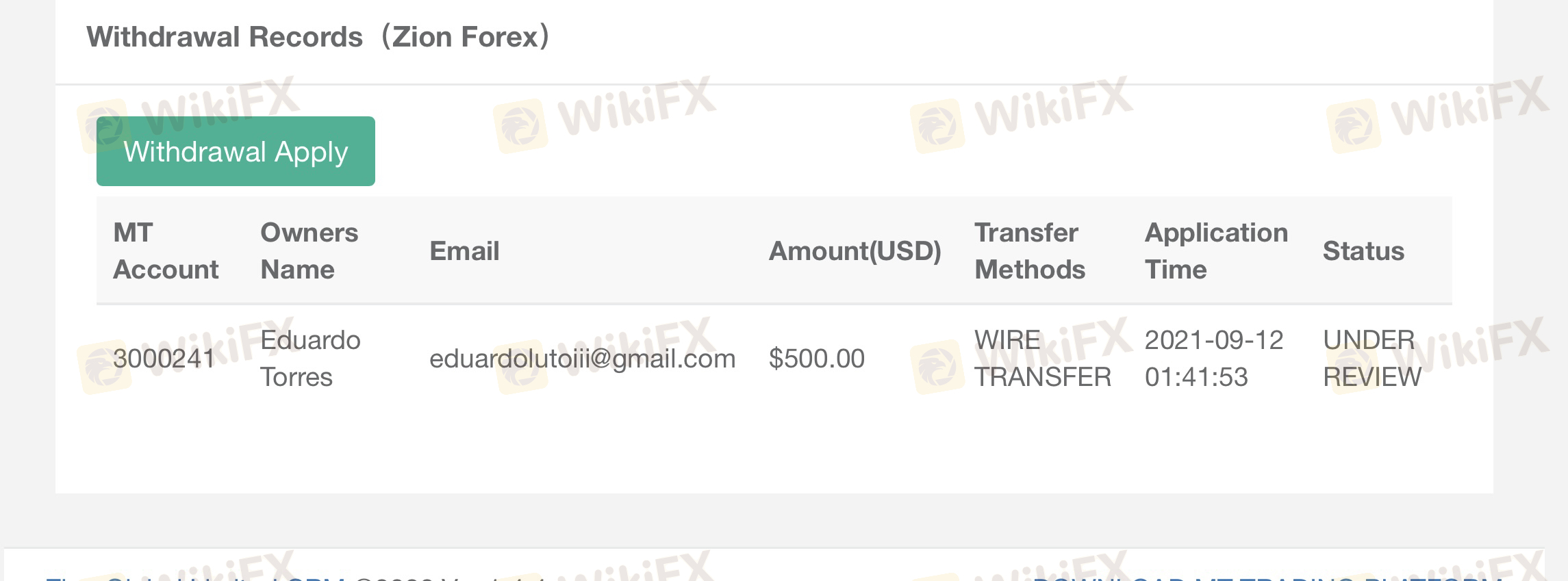 لقد قدمت طلب سحب في سبتمبر 2021. لم أتلق أي رد من الشركة ولم أتلق أي أموال. كان مبلغ السحب 500 دولار. توضح الصور التالية أن لدي حسابًا لدى الشركة ، وأن لديّ الأموال المتاحة في الحساب وأنني قد أجريت عملية سحب في التاريخ الموضح. أسعى للحصول على حل في أسرع وقت ممكن. شكرا لك!