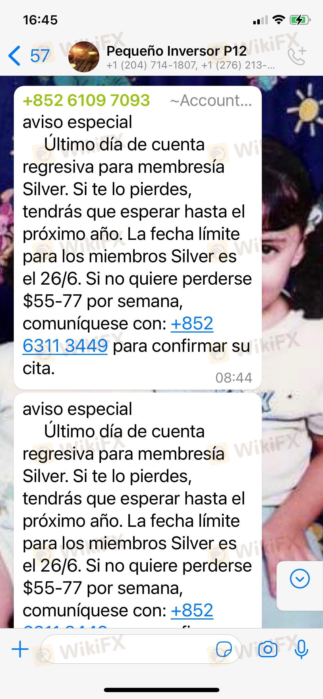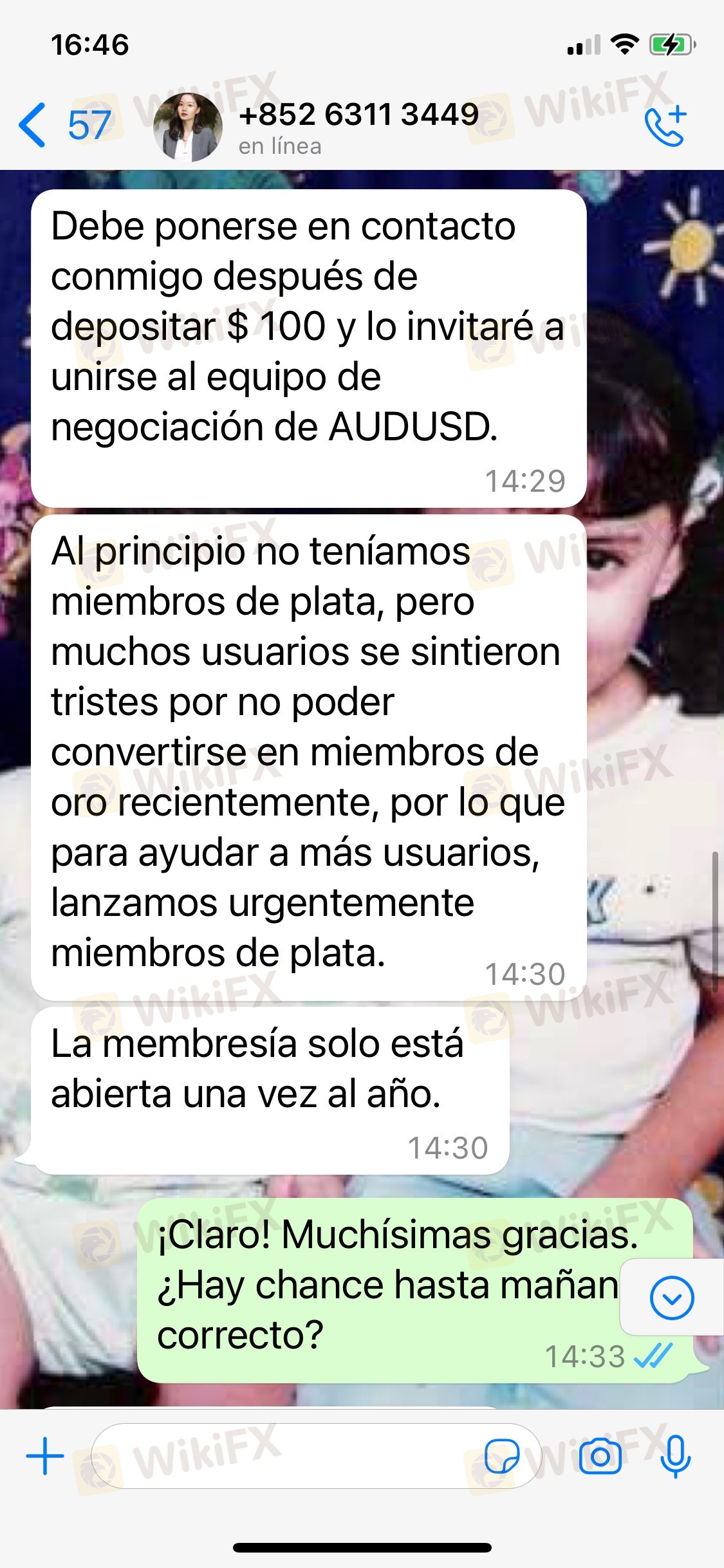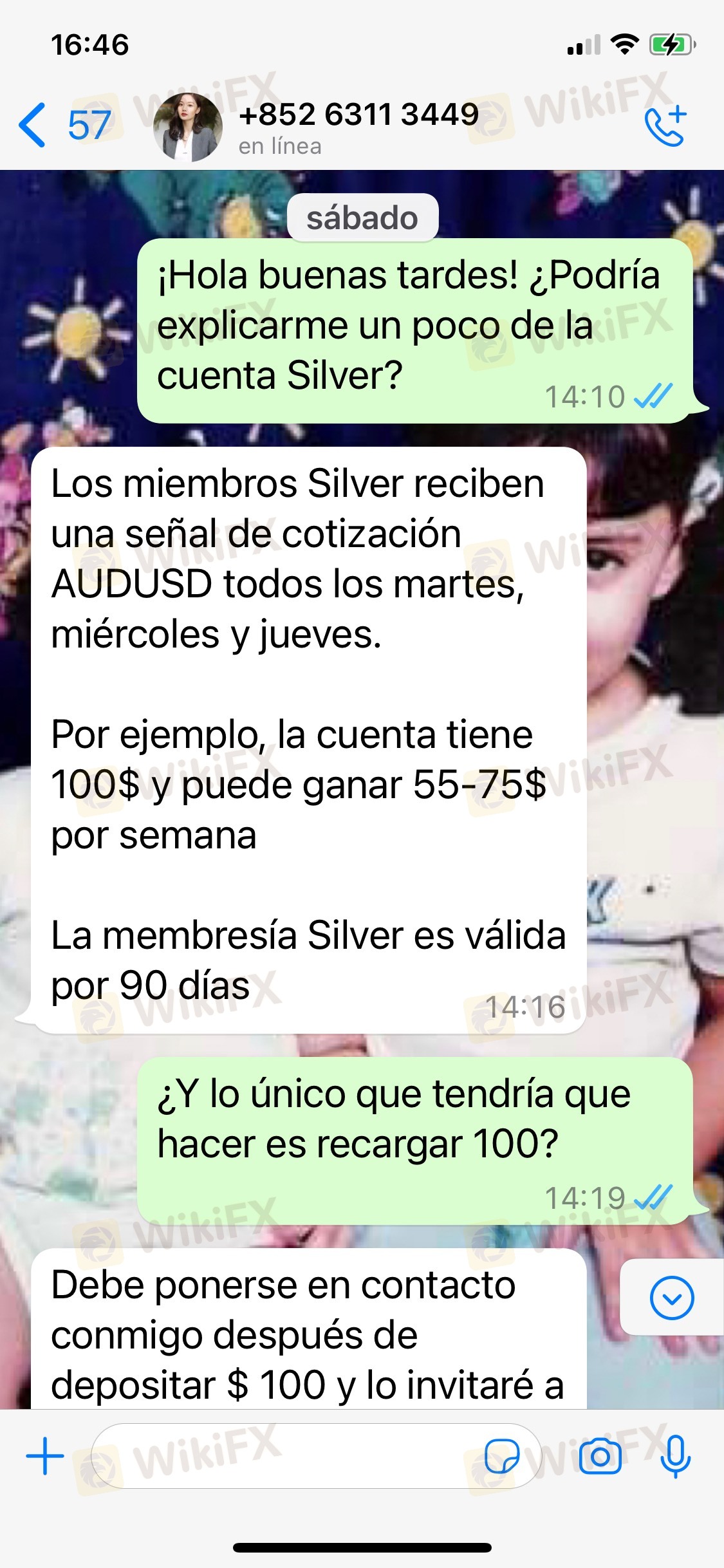 كان كل شيء يسير على ما يرام حتى عرضوا فرصة "العضوية الفضية" التي تتكون من إيداع 100 دولار والمزيد من المزايا. بما أنني كنت في حاجة إلى النمو المالي ، فقد انتهزت الفرصة. عندما أرسلوا الإشارة للتداول ، قمنا بالتداول ، ولكن كان هناك خسارة كاملة للمال ولم يكن هناك استجابة من الوسطاء. في المقابل ، اشتكى العديد من المستخدمين من عدم تمكنهم من سحب أرباحهم منذ يوم الجمعة ، والآن لم يتمكن أحد من سحب ما تبقى. في حالتي ، فقدت كل أموالي ، حوالي 141 دولارًا ولا أعرف ماذا أفعل. أترك الشكوى ، ولا أعرف ما إذا كان بإمكانهم مساعدتي ، لكنني تركت الشكوى. شكرا جزيلا لك.