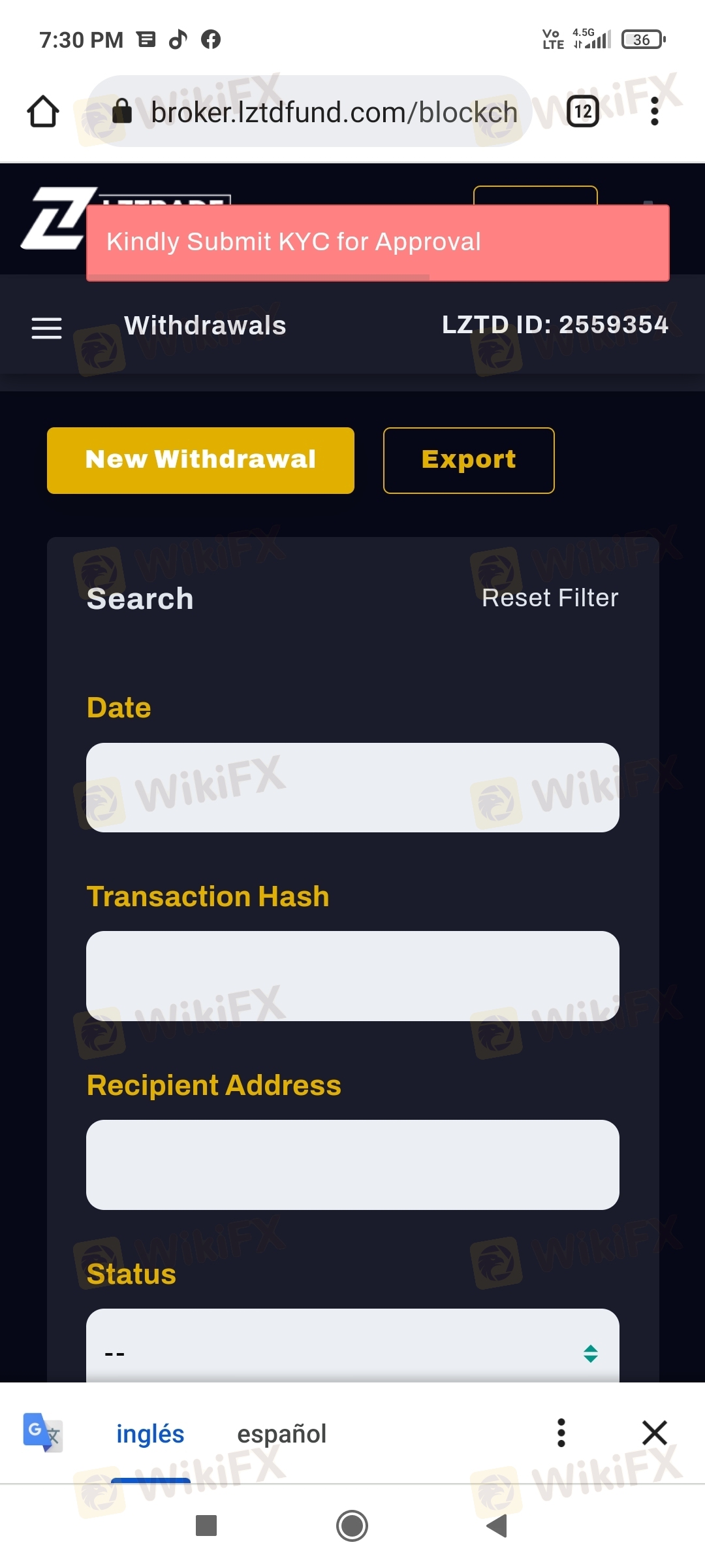 لقد انتهيت بالفعل من عملية الانسحاب ولم يسمح لي بإجراء عمليات سحب ولم يعطوني إجابة ، لذلك أطلب التوسط في هذه المطالبة
