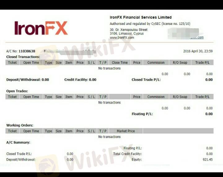 unable to withdraw from the platform IronFX