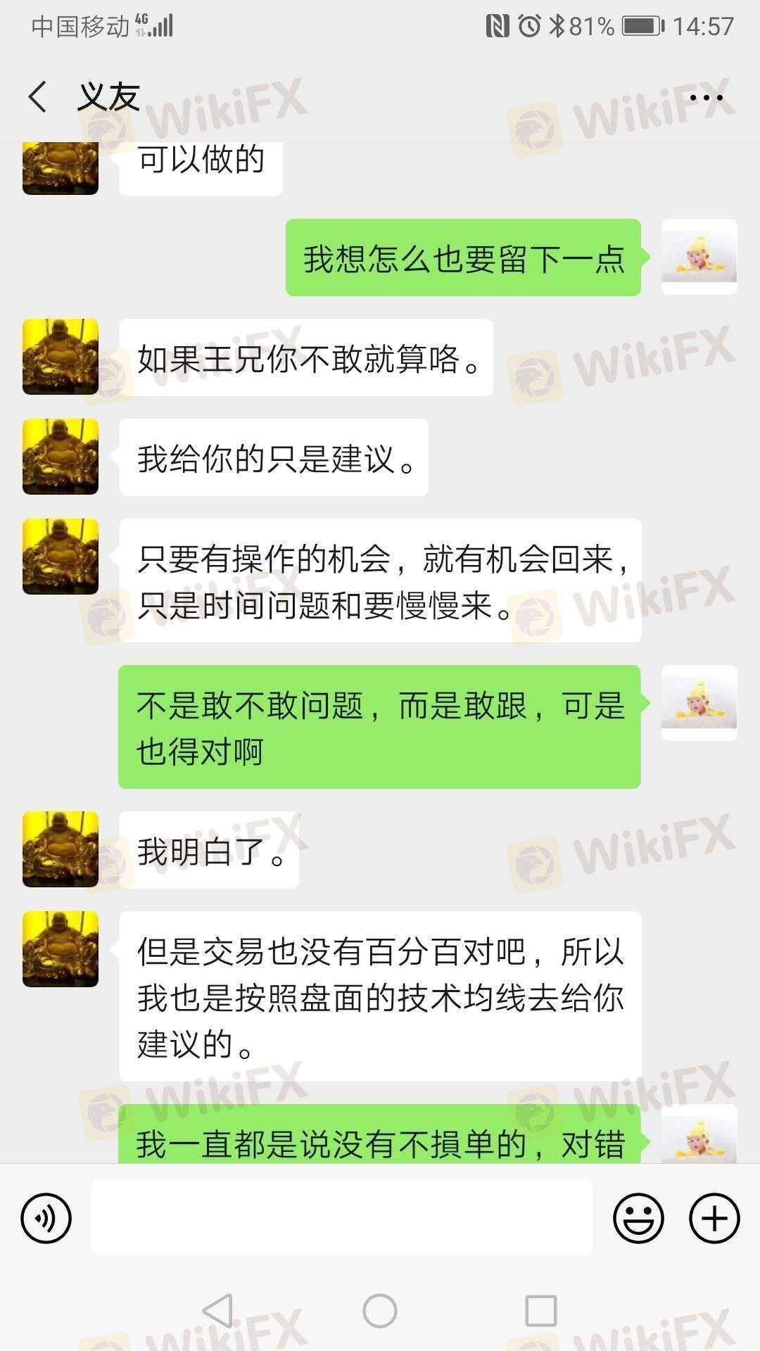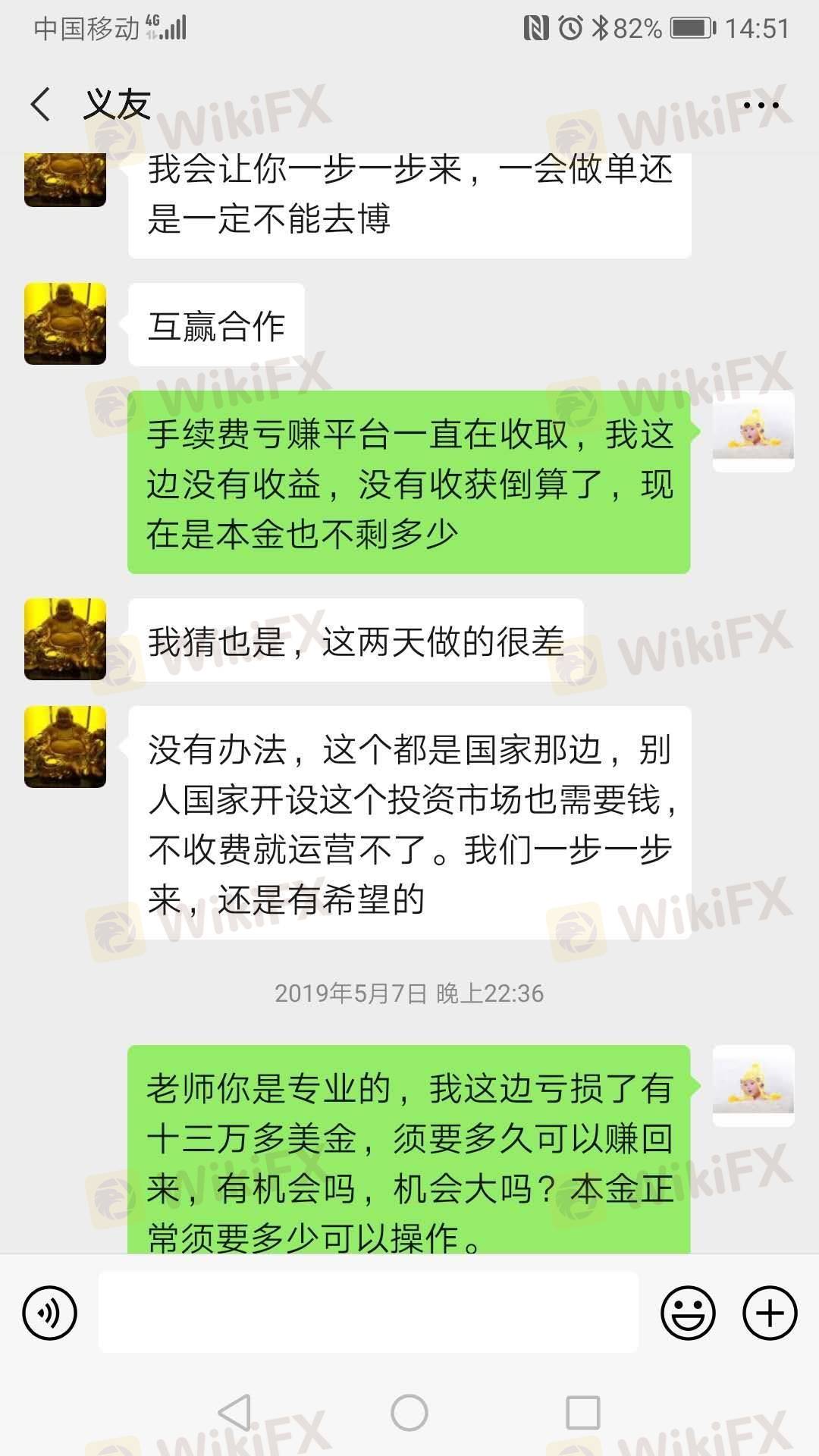 我是去年5月份的时候被你们平台的老师(义友)给诱导进入平台入金开户,因为我自己本身不懂这些,所以他就不停的给我进行带单操作,在他的恶意带单下,我在你们平台亏损了十几万资金,这个问题希望你们平台能给我一个合理的处理方案!
