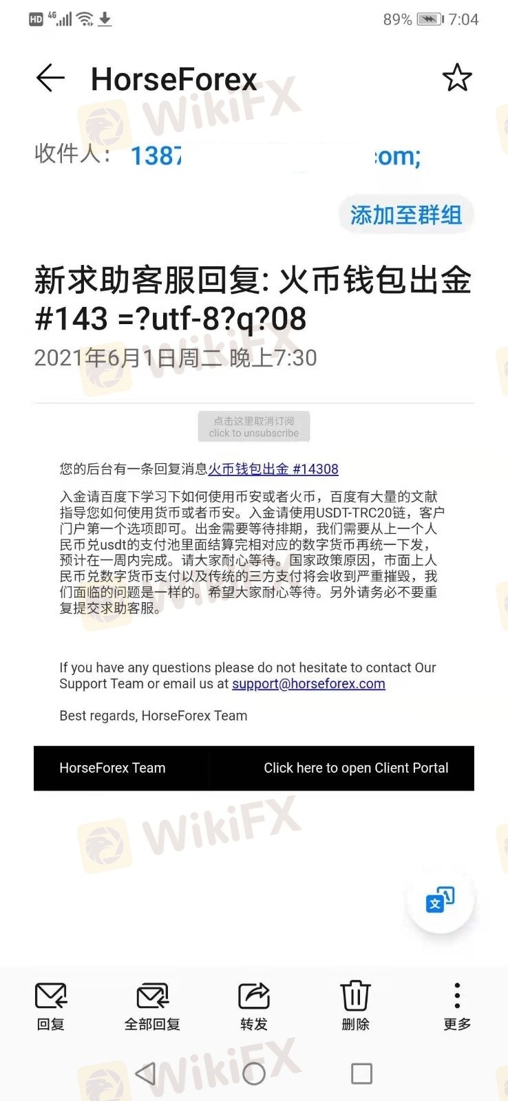 Horseforex does not allow withdrawals now. He said that the national policy is to change the gold channel, but it has not been resolved yet. The customer service is blocked, and the email is not returned.