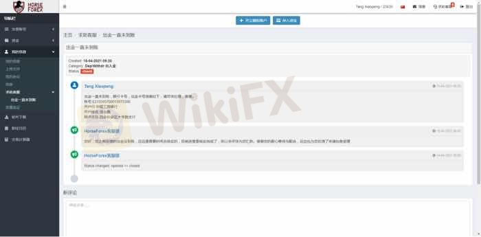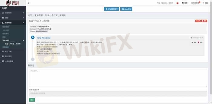 Horseforex withdrawal of USD3000 has not arrived for two months
