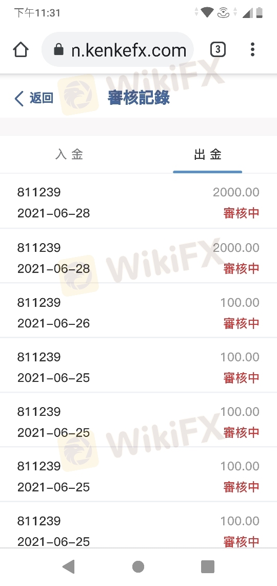 我申請出金,Kenke到現在置之不理,與客服聯繫沒回覆,寄電子信箱沒反應