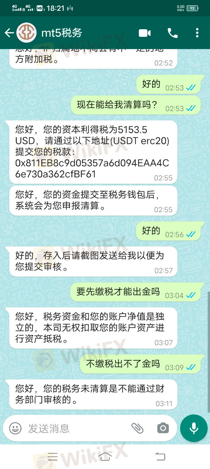 出金的时候说是要税率,要先交税,才能出金,我没有补税,我把账户里面的钱和入金时候弄成一样,然后一直说正在查询,出不了金 图片中的女的叫陈雪,在美国芝加哥,重庆人,他说他哥哥是做金融的有团队,每次按她给的数据做,都能赚,当你赢的比你入金是的金额高的时候,就让你出金,出金就要交税,千万不要相信,他们的MT5平台数据作假 Hong Kong Fortune Forex Group Limited此公司名字