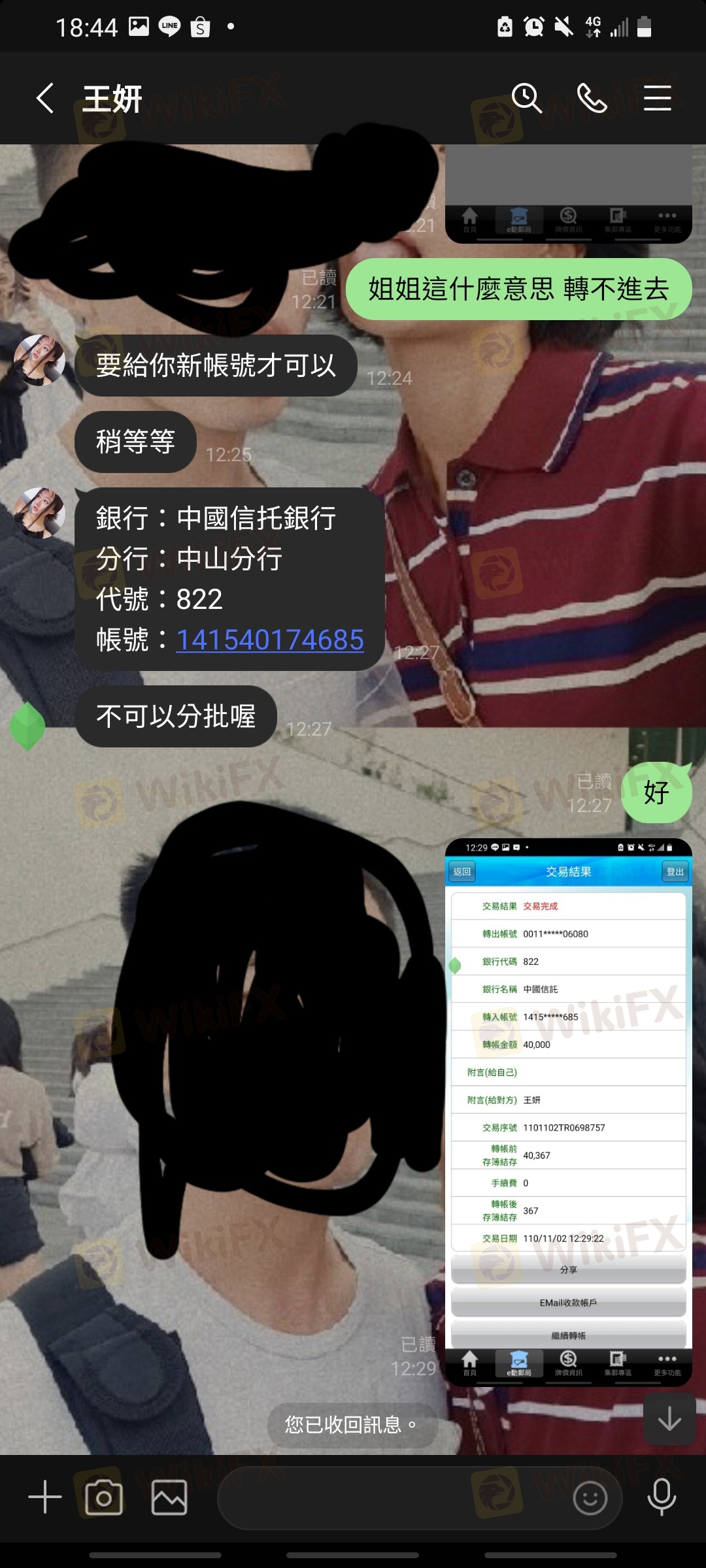 A female scammer invited me to join a community called Destiny Group, and at first, I questioned their legitimacy but they were able to gain my trust by providing the relevant certification on. They taught us about the stock market to further gain my trust and then recommended that I should open an account on . She asked us to transfer money and promised she would help us operate the stock. Their remittance method is to remit money to their bank account first, and then they deposit money onsystem. The first time 30,000 I transfered to her had been deposit into the system, but the second time I transfered 70,000, it was not credited and the scammer disappeared.