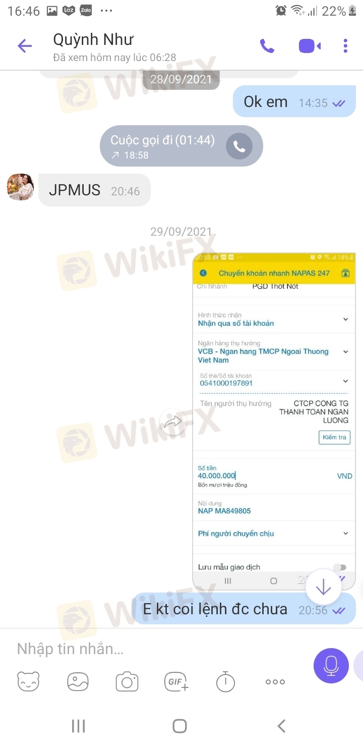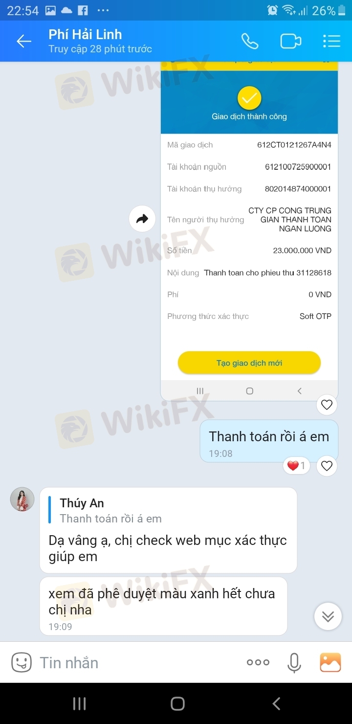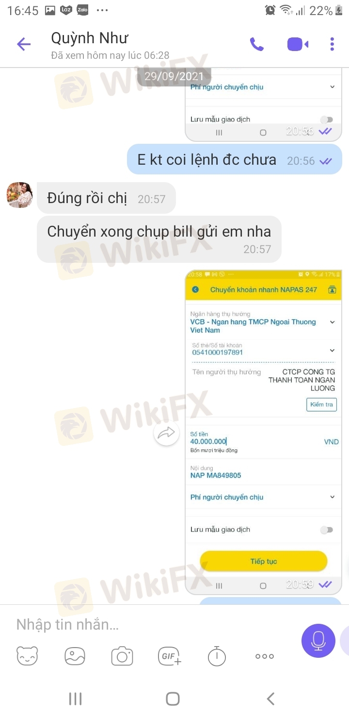 Scope Market's staff is Phi Hai Linh at 0866.232,038 and Quynh Nhu at 0374.169.05; 0846,663.224.As introducing myself as an expert, led me to deposit money to surf foreign currency pairs and always reassured me that I would be fine, just follow Nhu's instructions, leading to only one week from September 24th. 2021 to October 1, 2021 burned my 86 million dong. After I was unable to deposit and was afraid I would report it, they pushed me out of the zalo group "Update market signals" that they created to lure me in.