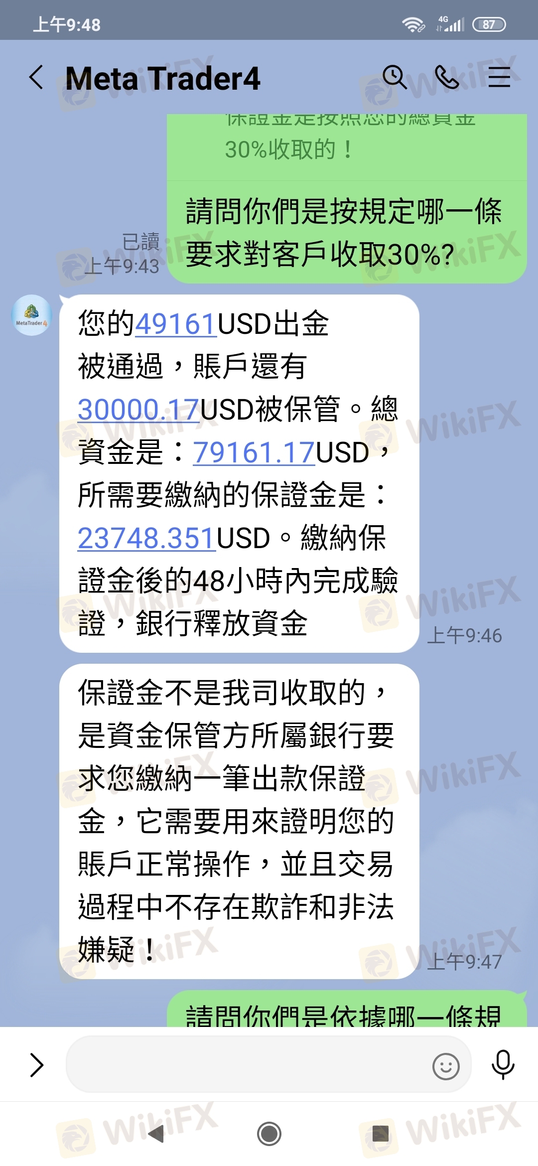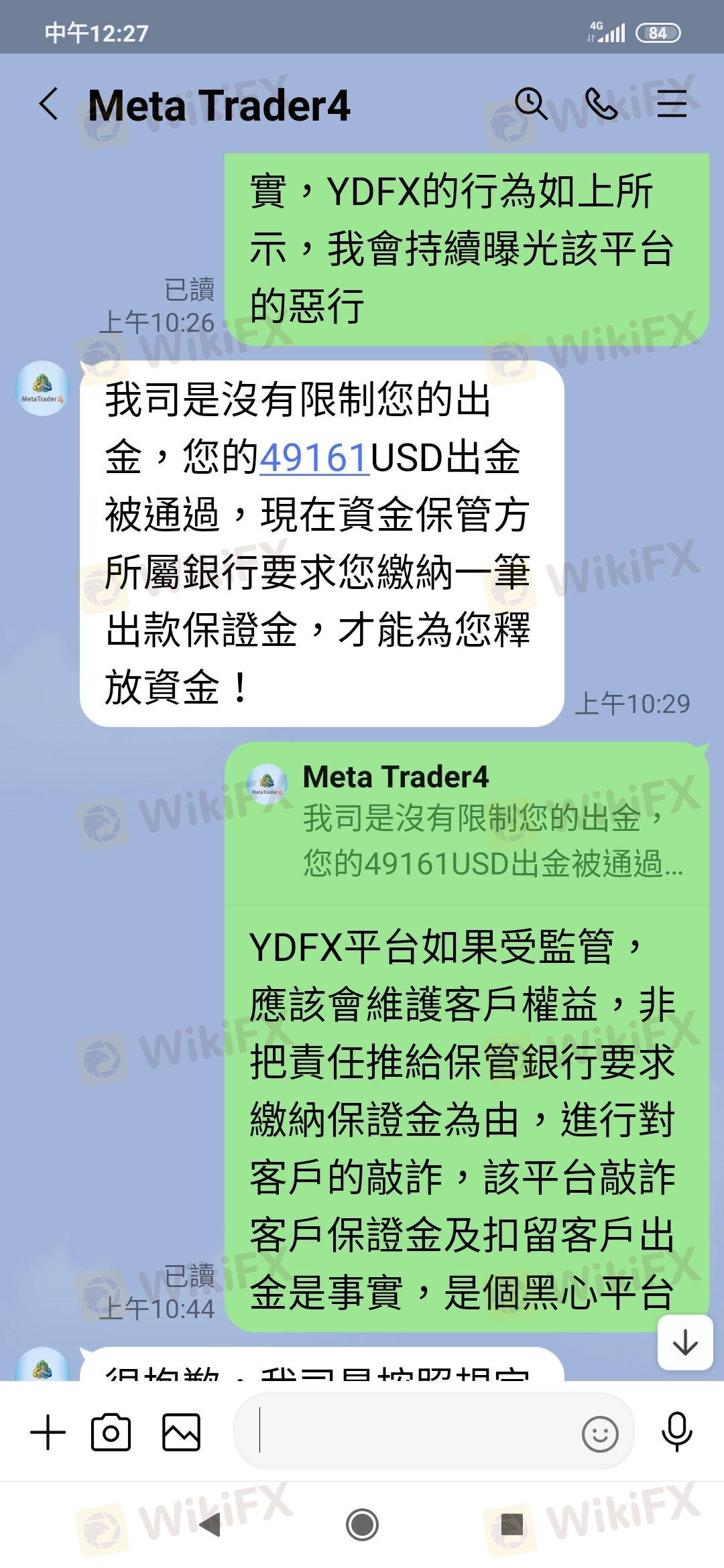 我按正常程序出金,該公司卻要繳30%保證金才能出金,YDFX違反誠信原則,敲詐客戶保證金及限制出金