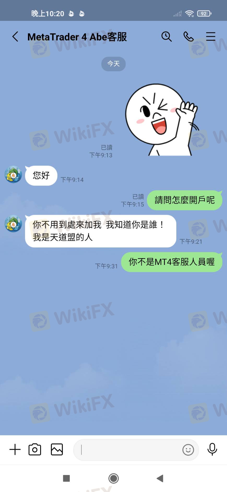 造假MT4服務人員身份,引導入金後避而不見,並且盜用客戶帳戶,以致帳戶凍結,無法出金