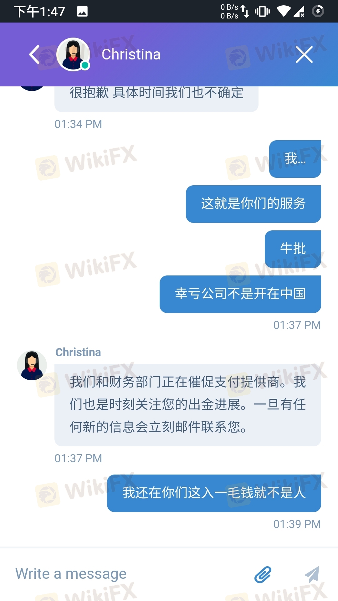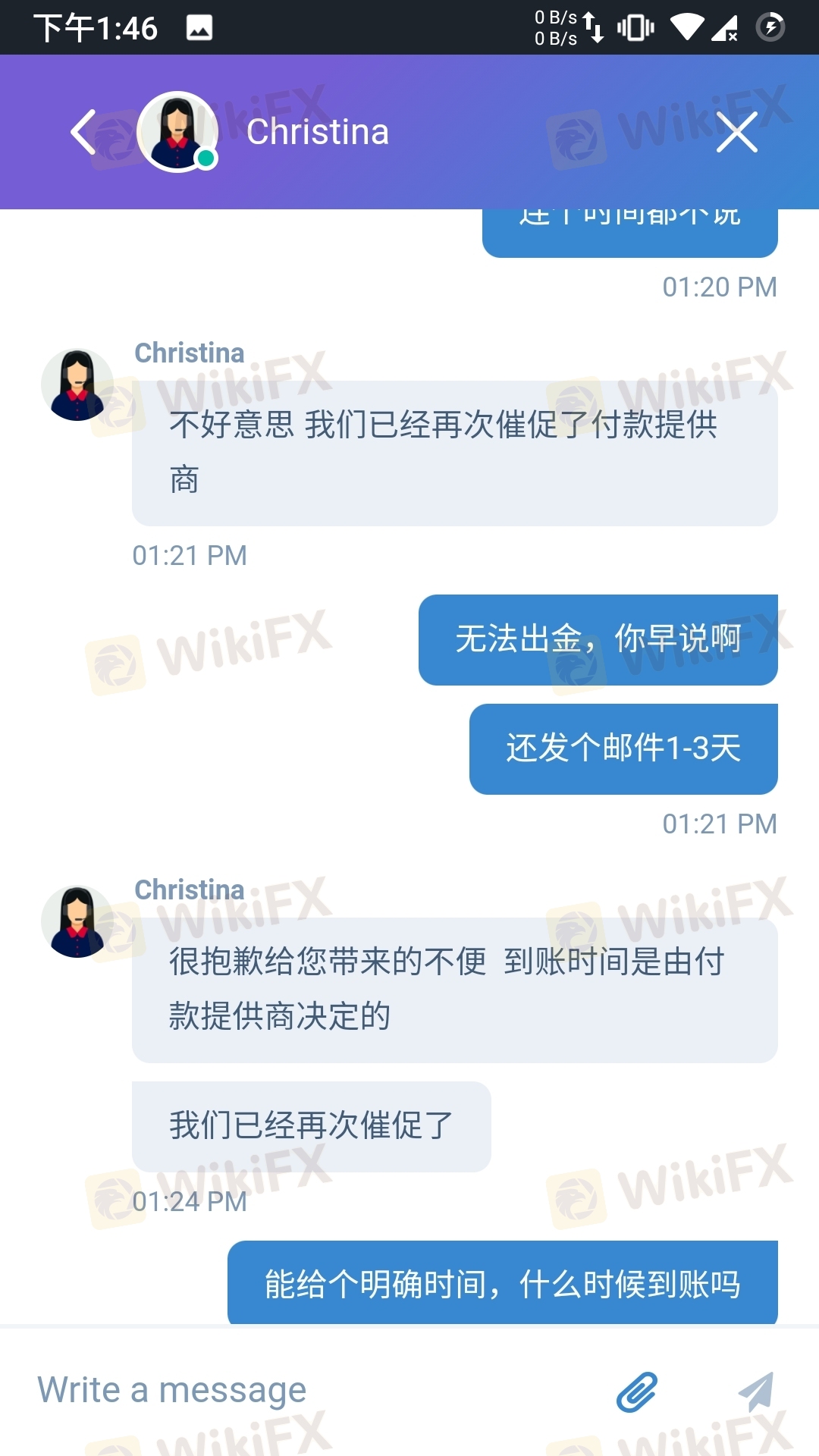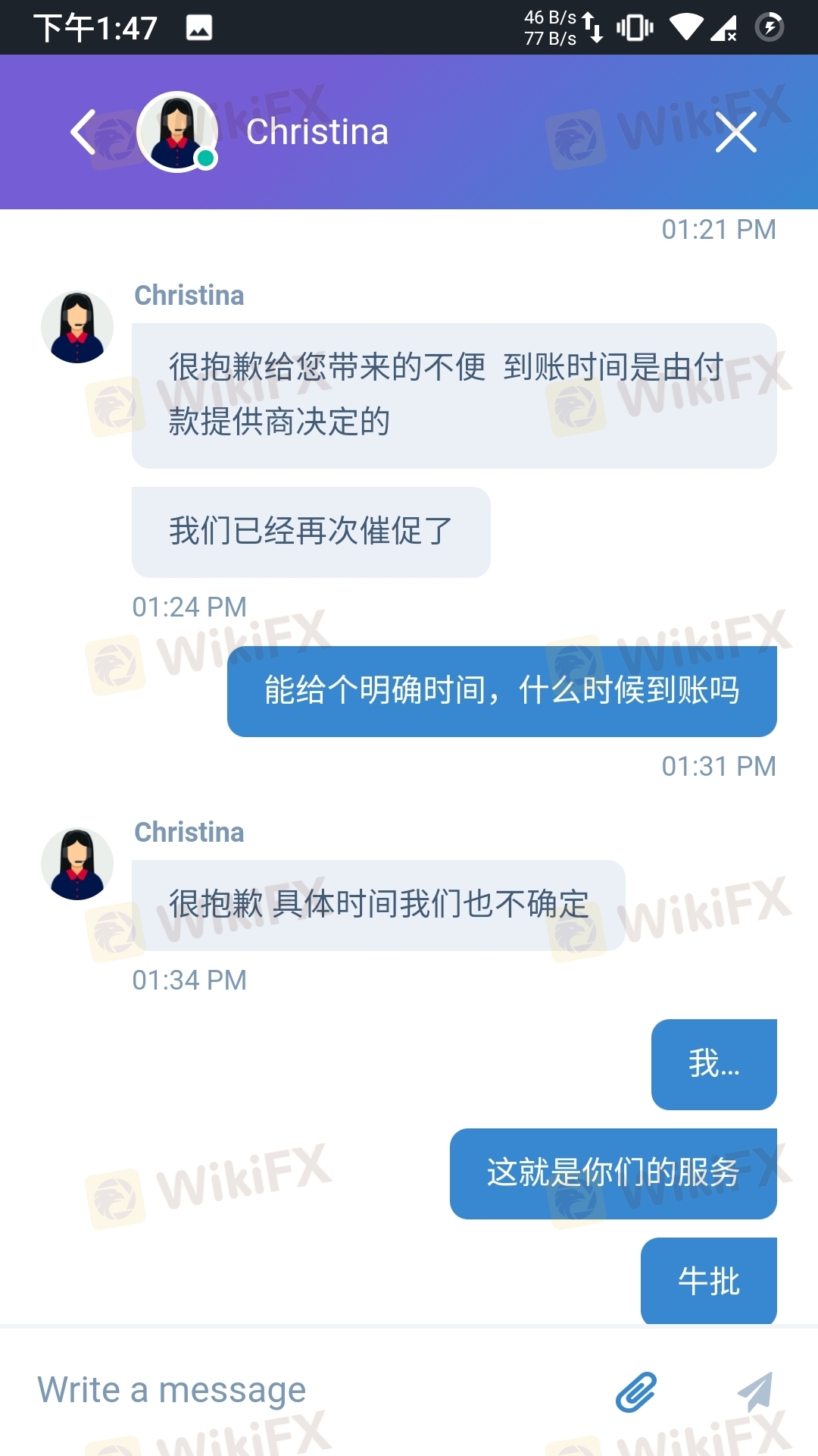 The withdrawal application was filed at 4:00 am on June 22. Strictly speaking, it was still in the market on the 21st. The whole day was not reviewed and processed. It was not reviewed and processed until 3:00 PM on the 23rd. -3 days, on the 29th, the money has not been withdrawn. After the time specified by herself, she said that the payment providers have different speeds. When I asked her when she could give a clear answer, she said she didn't know, the money was probably gone, and it took two As an old customer for more than a year, I know that all platforms have this day. Simply not much money, I hope everyone pays attention.