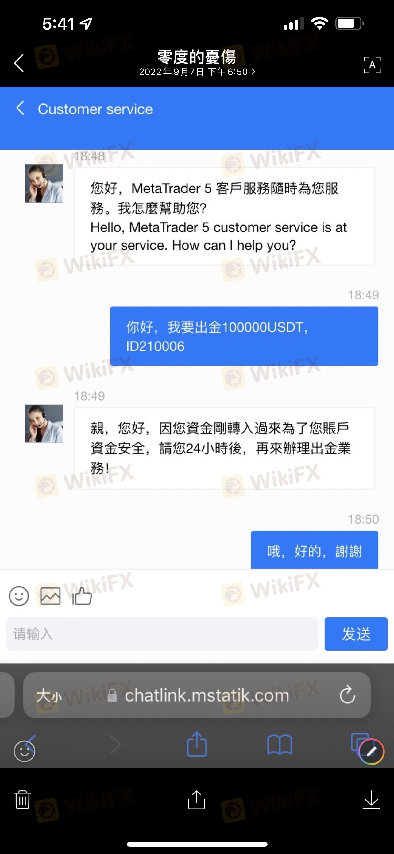 IG上網友叫零度的憂傷,加line後聊生活,聊理財就推薦黃金外匯交易,依次安裝了metatrade5 幣安,整天吵著要你入金,說今晚有大行情,入金2萬後有順利出金,依此叫你加碼,適逢股市低迷,不疑有他,就錄續從股市提出了160萬台幣等值的USDT 以為MT5是安全的平台,當時交易商是Grand Signal Markets limited, 然後平台就說維護,停擺帳號歸零,但因為網友知道我幣安還有錢沒入金,繼續騙,希望我再入金,沒多久又換新的交易商lunbouxlimted, 中間又加強力道勸說入金,今晚有大行情,明晚有大行情不要錯過了,換交易商帳號金額歸零,要重新申請帳號,假客服再把你之前帳號的錢轉過來新帳號,此時已發現不能提現,不能出金,出金排3415號,要加速可以加入會員要40萬台幣左右的USDT,才可以出金,此時網友加速翻臉,說他有加入會員,叫我自己也加入,但質疑網友他就惡言相向,宣稱是客服問題,與他無關,但因幣安仍有USDT還在,所以第三次又換交易商Natural seven limited 網友仍主動告知我,又再次重新申請帳號,假客服,假金額,出不了金