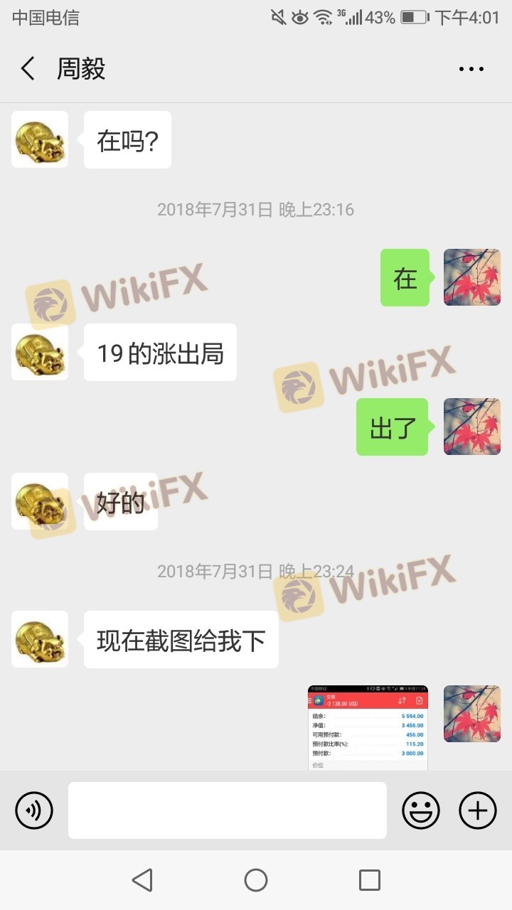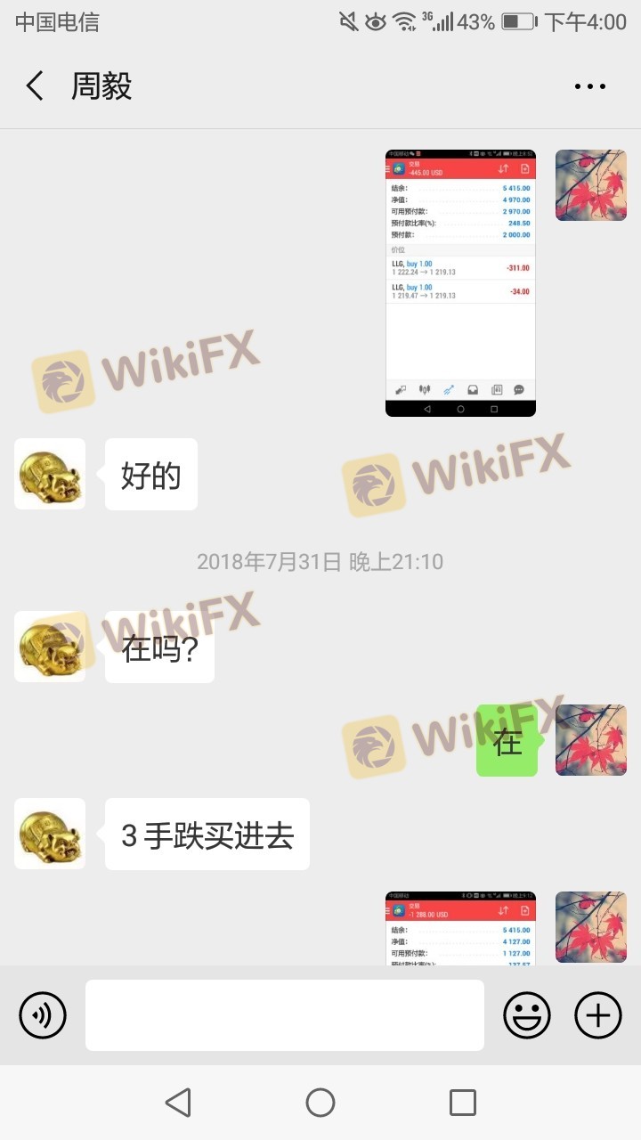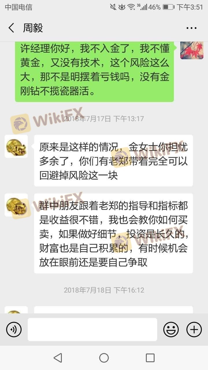 2018年8月份的时候,不知道被谁拉进一个微信群。该群是由名叫老郑(化名)的老师组建的,号称教大家如何炒股,每天解盘分析行情。但是慢慢的,除了炒股就开始宣他们带领的其他一些人在黄金市场如何盈利,并且宣称股市跌荡起伏行情不好或庄家太多,中国股市不容易获利,群里很很多老师的粉丝都说在老师的带动下赚了很多钱,都有截图,感谢老师什么的 气氛很高,老师鼓动大家把股市里的钱转入外汇黄金市场,并且群里有平台的开户专员可以协助开户和入金。我在一个群里推荐的所谓的一个什么许经理,他推荐了三甲金融策略上开户。我后来犹豫 因为对黄金不懂,怕亏钱,就不想入金交易,那个经理三天两头的电话,微信催我入金,知道我的顾虑,说可以指导带我操纵,完全避掉风险,我在他的指挥下,不到一个星期亏掉九万块钱,他带我的下单全是反着来的,去年8月3号非农行情,本来我的是四手空单(一万多美金四手单子已是重仓)8点半一到,黄金利多,他不让我平仓买多,说是一会就下来,可是黄金指数一路疯跑,我是全在抗单,最后实在没办法平了,剩下5000美金 ,他又让我下4手多单,谁知黄金又回头了跌了,我在第二天早上只剩800块钱了,无奈出来了