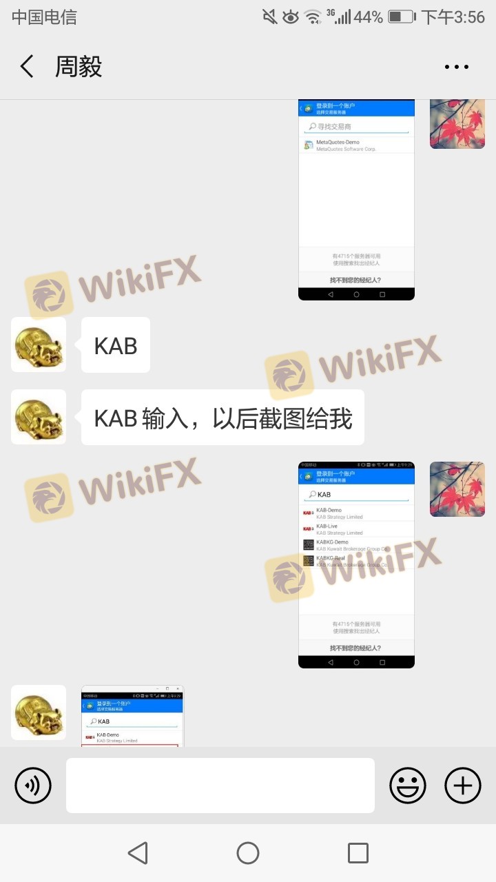 In August, 2018, I was invited into a WeChat group without notification. The group was set up by an adviser Laozhen (alias), who says he would like to teach us to invest in stock by analyzing the market. As time went by, he started to show us his successful experience in helping others make profits in gold market. He also propagated the ideas of the stock market being unstable and profits was difficult to be gained in China with many brokers. In the group, many his fans thanked him for his profitable recommendations, with screenshots proving their words. Most of people were excited. The adviser encouraged us to transfer money in stock market into gold market, and told us that there were bank commissioners who can help us to open accounts and deposit. A supposed Manager Xu was introduced to me. He advised me to open an account on KAB STRATEGY. I hesitated, afraid of losing money, since I have known nothing about gold. As I refused to deposit in the KAB STRATEGY account, the manager often called me and urged me over WeChat. After knowing my concerns, he said he could help me to avoid all risks. Under his guidance, I lost 90,000 in less than a week. He totally gave me reverse order recommendations. When the nonfarm payrolls market was announced on 3, August, I had 4 short orders (the four short orders amounted to over 10,000 dollars, outweighing the capital). When it was 8:30 P.M., it showed that gold was promising. He said I should not close out because the promising trend would not last long. However, gold index kept soaring and I didn’t stop loss. Finally, I had to close out, with 50,000 dollars left. He advised me to buy 4 long orders, but gold declined again. I only have 800 left the next morning and quit.