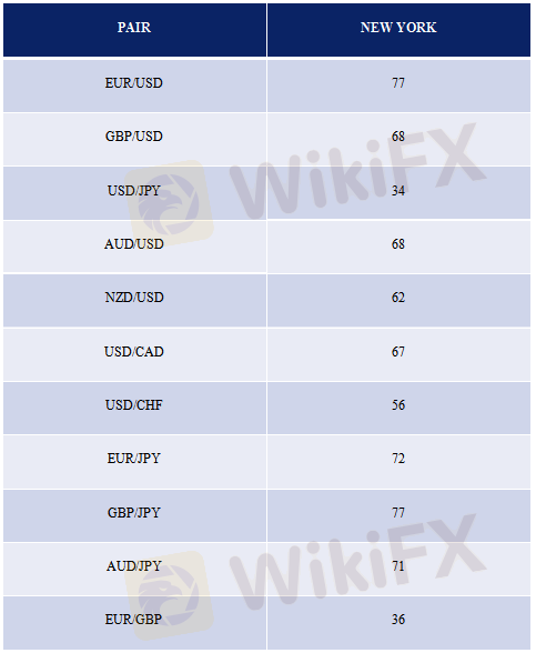 Please note that this table is not all-inclusive and the range may differ from time to time depending on various conditions such as news and specific economic trading activity.
