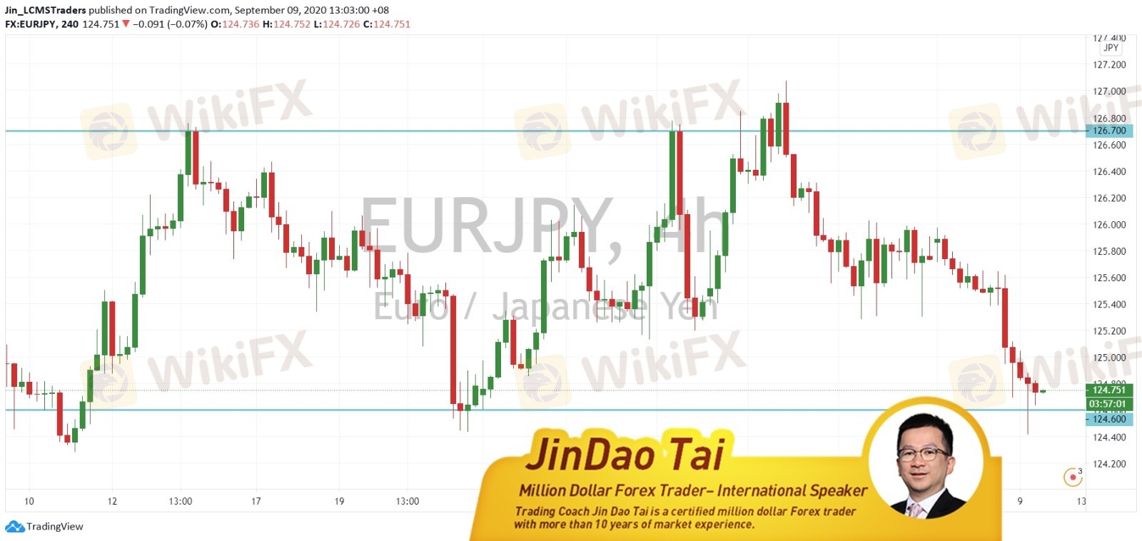Look for selling opportunities of EUR/JPY if it breaks the support zone of 124.600.`