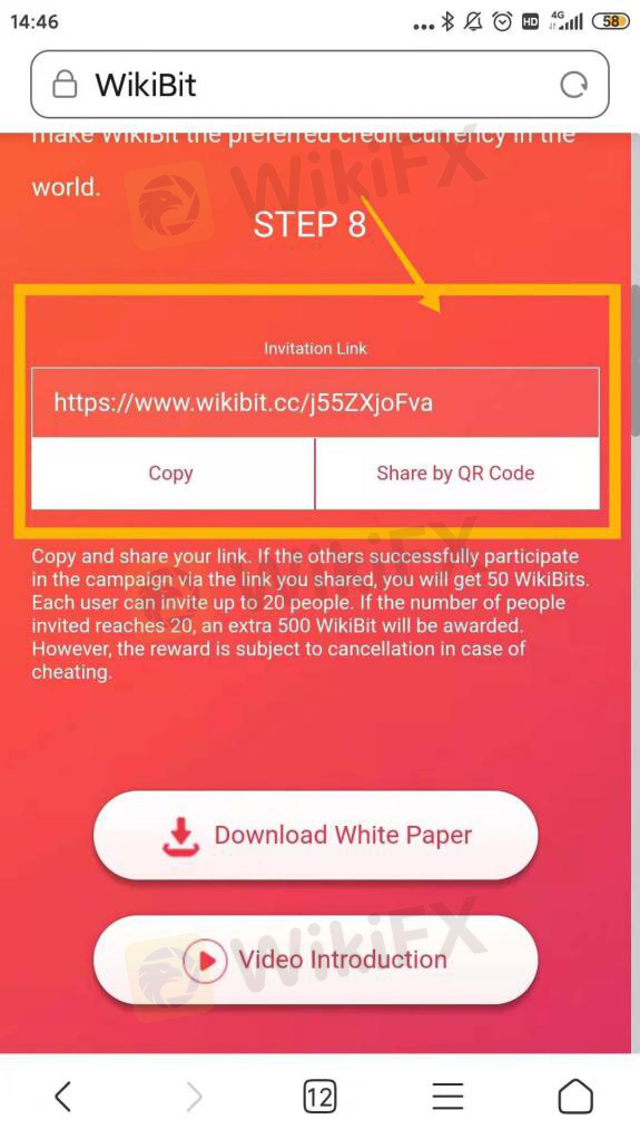 *Step 8(see picture attached ): Copy the invitation link or save the QR code. Share it to your friends and get more gift coins.