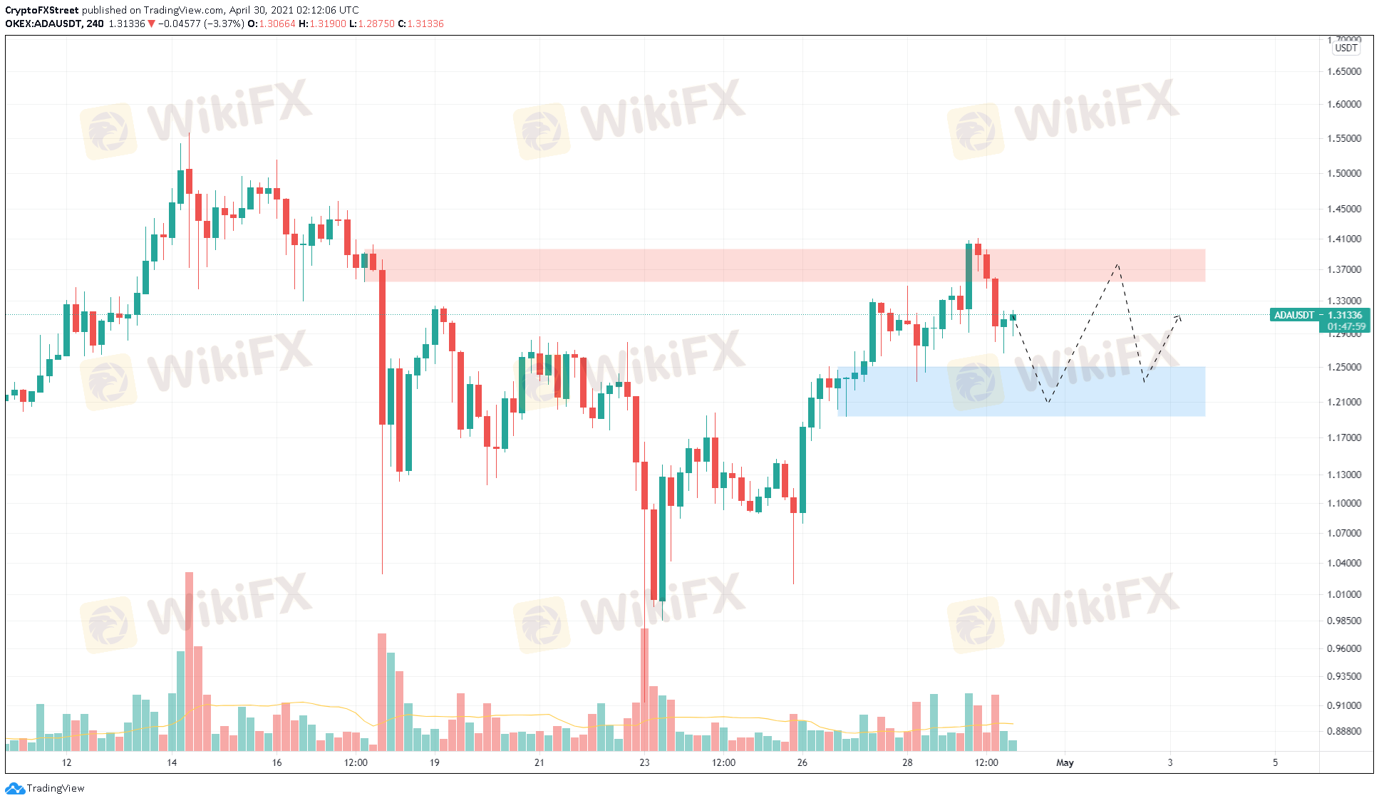ADA price surged nearly 30% in less than four days allowing it to retest the supply zone that extends from $1.35 to $1.39. Although unsuccessful in breaching it, Cardano has found support on an immediate demand barrier that stretches from $1.19 to $1.25.