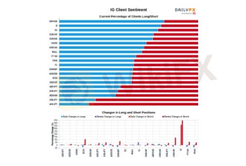 Our data shows the vast majority of traders in GBP/USD are long at 75.36%, while traders in AUD/JPY are at opposite extremes with 78.90%.