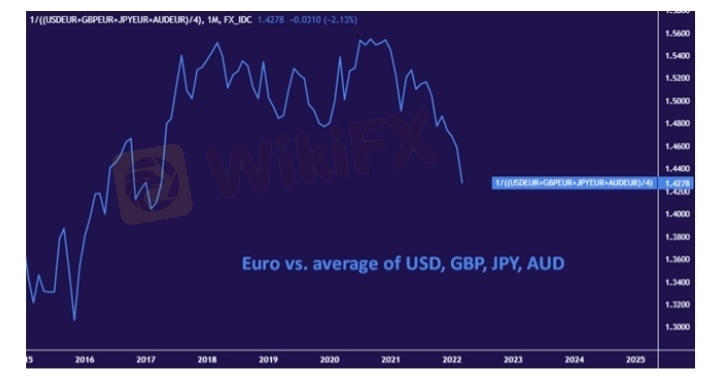 Market analysisEURO VS. AVERAGE OF MAJOR CURRENCIES - MONTHLY CHART