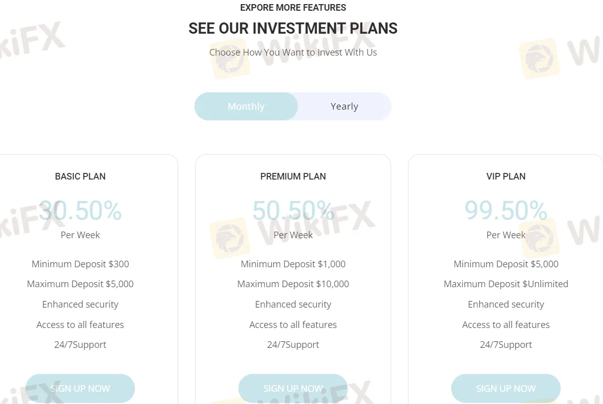 Investment plans with up to 99.5% profit after a week