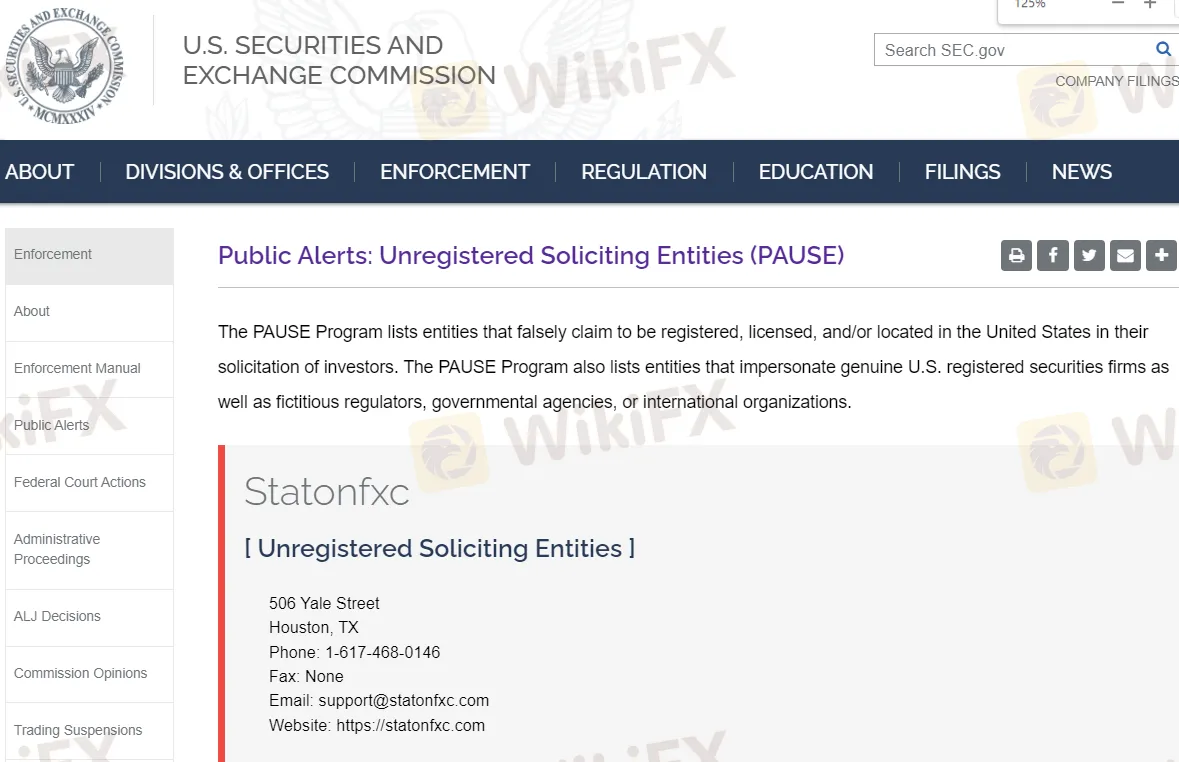 SEC Public Alert - StatonFxc is an unregistered soliciting entity