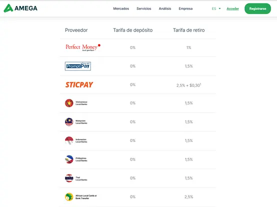 AMEGA declara ofrecer trading libre de comisiones como para acciones, índices, Forex, energías, metales y criptos. Sin embargo, los otros costes como SWAP, spreads no se especifican. A la hora de calcular los beneficios y las pérdidas, estos costes deben considerarse en conjunto y no elegirse de forma aislada, y si quiere operar con AMEGA le recomendamos que se tome un tiempo para calcular estos costes de negociación.