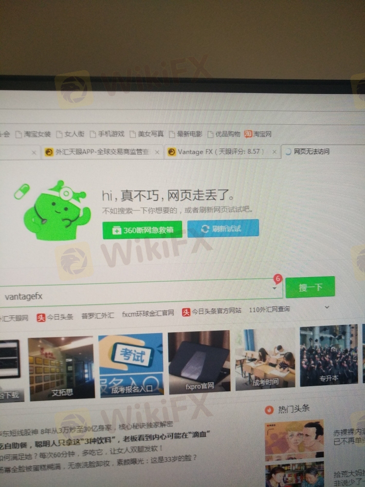 需要登陆账号,但中文网址一直打不开,联系客服答复说要一直刷新网页,刷新了好几天,还是打不开,用了3部手机和3台电脑都打不开网页,好不容易打开英文网页,居然说我的账号没有注册,难道VANTAGE fx 要跑路了吗?账号都消失了。四个网址三个打不开,打开一个登陆说不存在此账号!!!