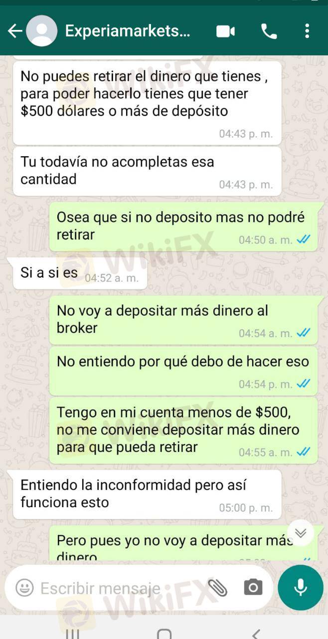 Me contactó una persona diciendo que si quería invertir con ellos , que con tan solo $250 dólares podría generar grandes ingresos, yo acepté deposite y todo bien , en mi cuenta tenía el dinero hice unas operaciones y genere mas dinero un día quise retirar las ganancias , la persona que me contacto me dijo que no podía hacerlo que porque mi depósito inicial era muy bajo que tenía que tener más de 500 depositados para poder retirar le dije que no y ya no me responde.