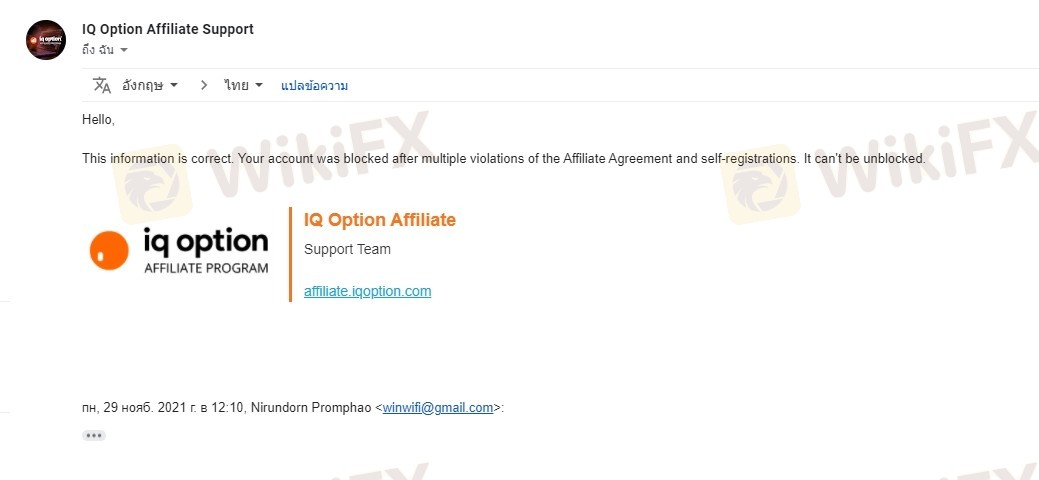 Afiliado engañoso, retiro lento, el soporte tailandés no responde