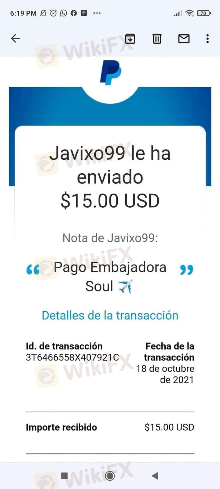 Tasa de comisión (USD): 3$