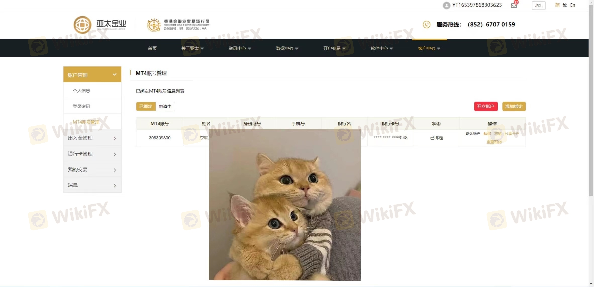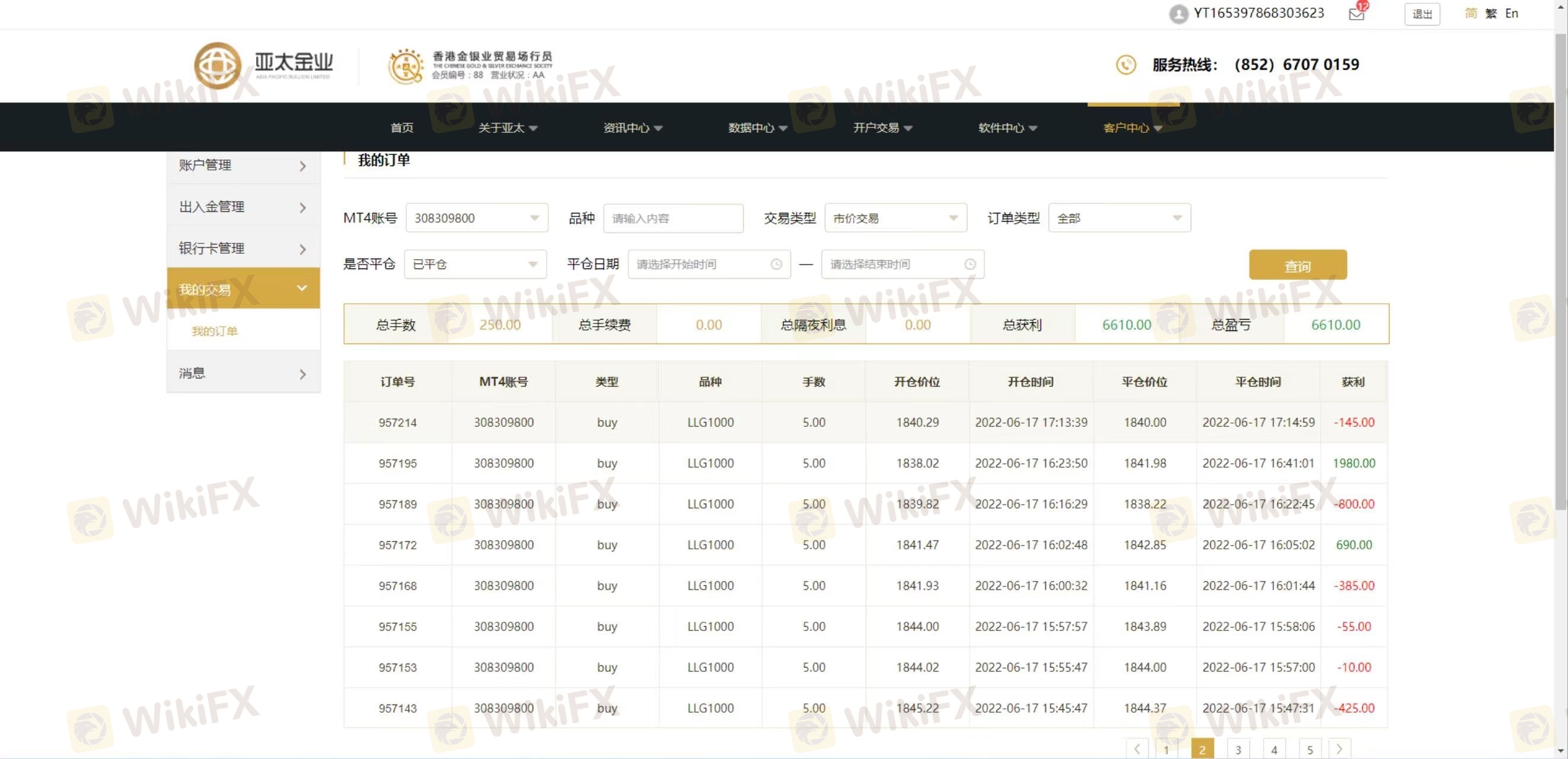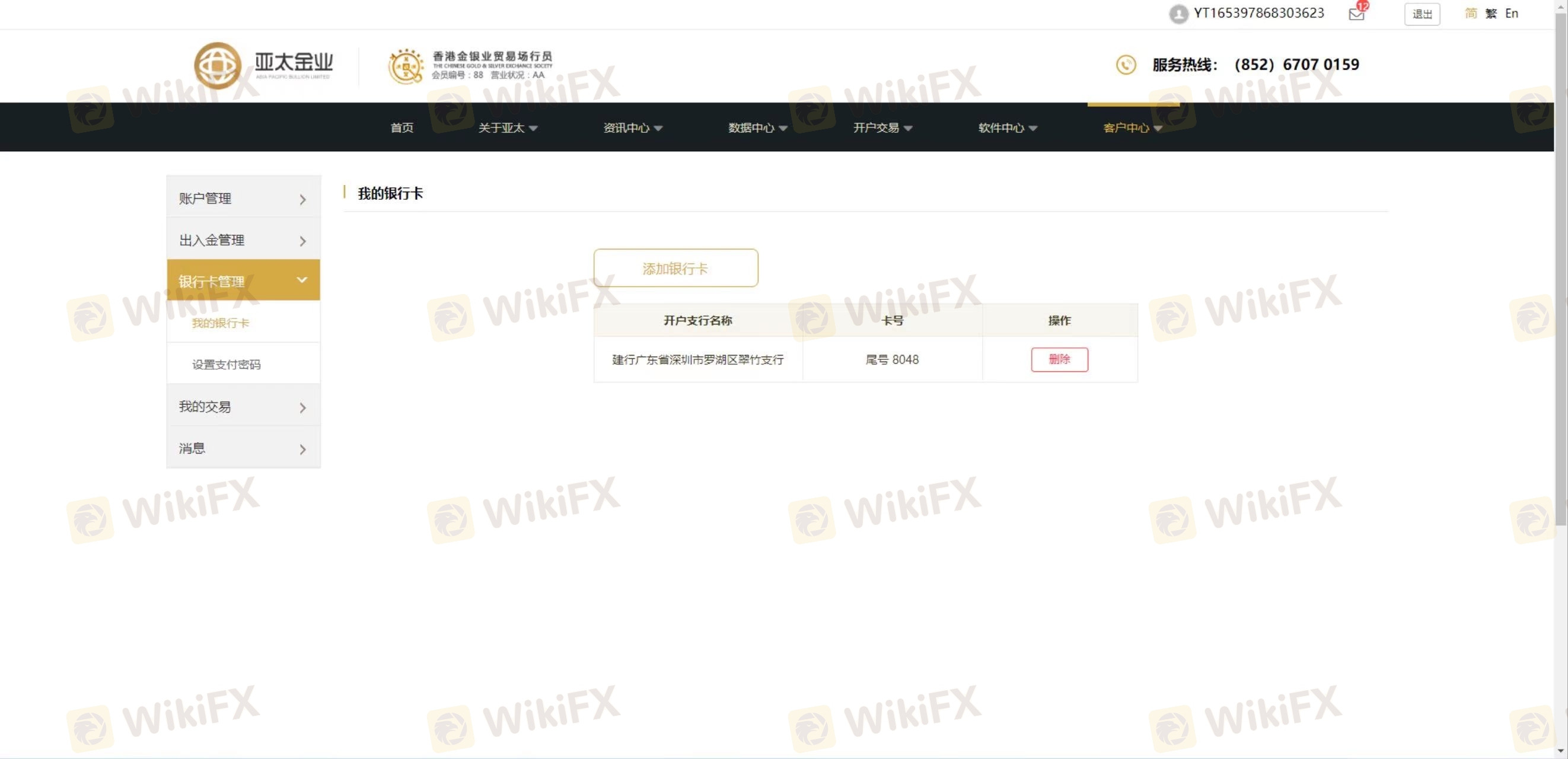 Nagbukas ako ng account sa Asia Pacific Bullion Company, isang miyembro ng Hong Kong Gold and Silver Exchange Field, No. 88, at nagdeposito ng USD 10,443.73 para sa pangangalakal. Ang aking trading account ay 308309800. Sa mahigit isang buwan, 6,610 US dollars lang ang kita ko. Nag-apply ako para sa withdrawal na 9,053.73 US dollars noong July 22, 2022. Hanggang ngayon, hindi ko pa rin natatanggap ang aking withdrawal. Ang katayuan ng pag-withdraw sa background ay palaging sinusuri, at ang pag-withdraw Walang pag-unlad at walang tugon, na humihiling ng proteksyon ng mga karapatan.