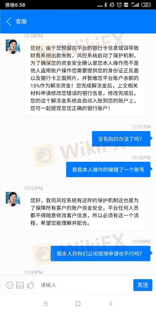 无法出金客服说是银行卡信息错误,需要暂缴解冻资金,是账户盈利的部分的百分之十五。就是套路骗钱的!