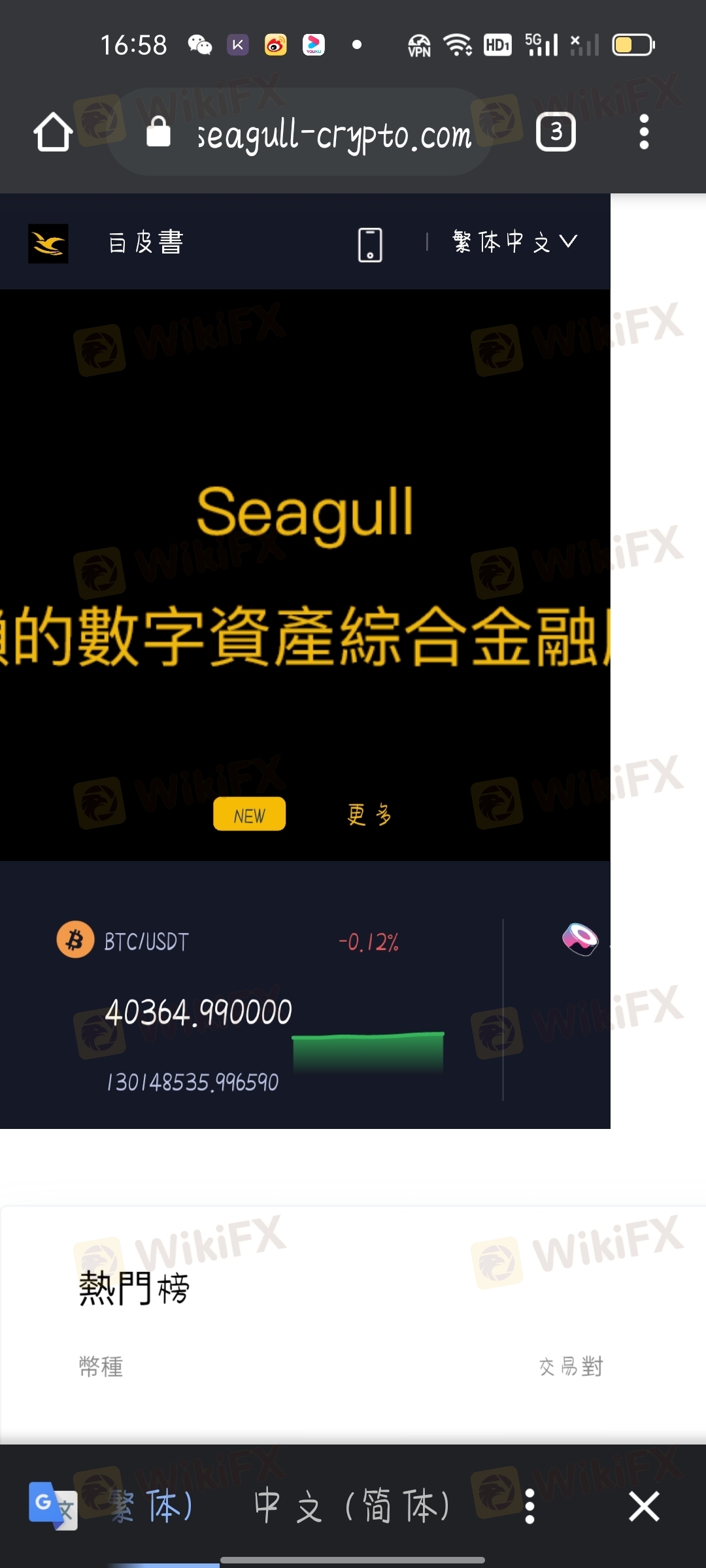 seagull crypto,一个做短线交割的平台,前期充值后少量币可提,现在完全不能提币.多数会在电报群里去拉人,盈利可观但是无法提币。