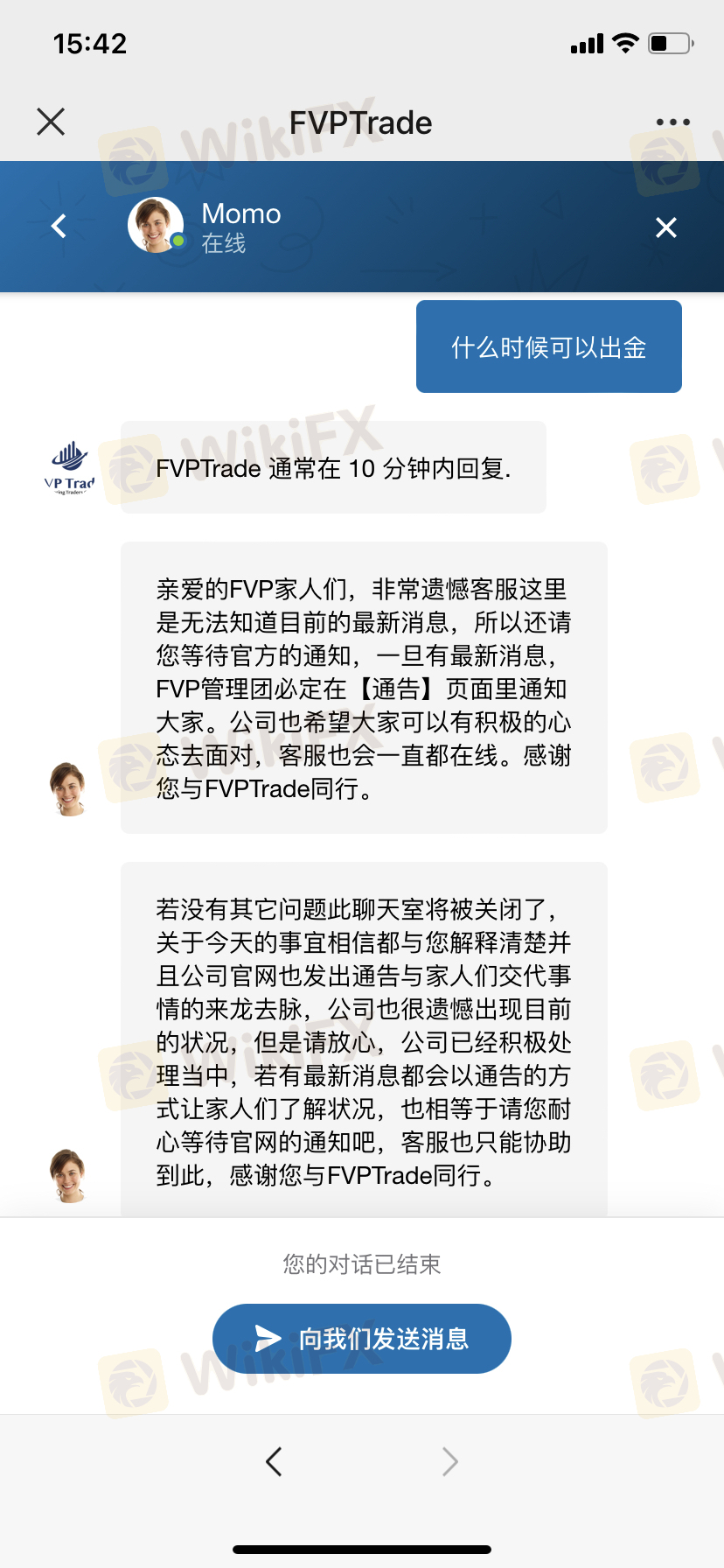 7月18号FVP出了个通告说资金冻结,到现在无法出金