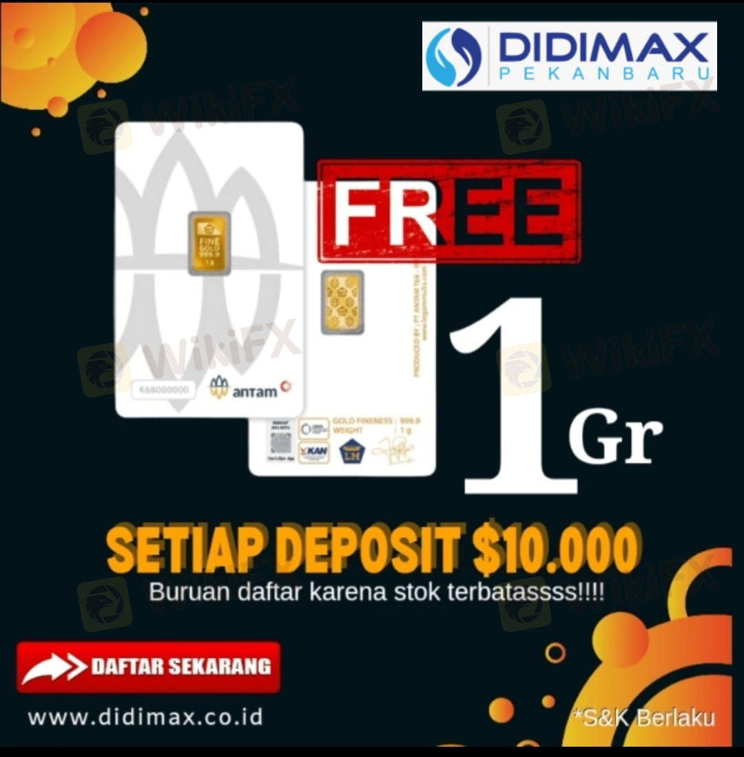 Kabar gembira buat nasabah yang mau join dgn didimax...segera sosialisasikan...hanya didimax pekanbaru memberikan reward emas antam setiap pembukaan $10k . Berlaku kelipatan. Buruan 😎😎😎