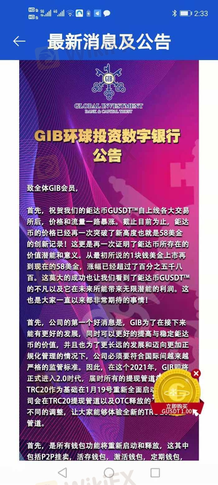 便宜公司GIB大家报警要团结报警,每次都是诱导投资者进行投资在释放,结果每次都是理由的空话行骗,大家看清楚