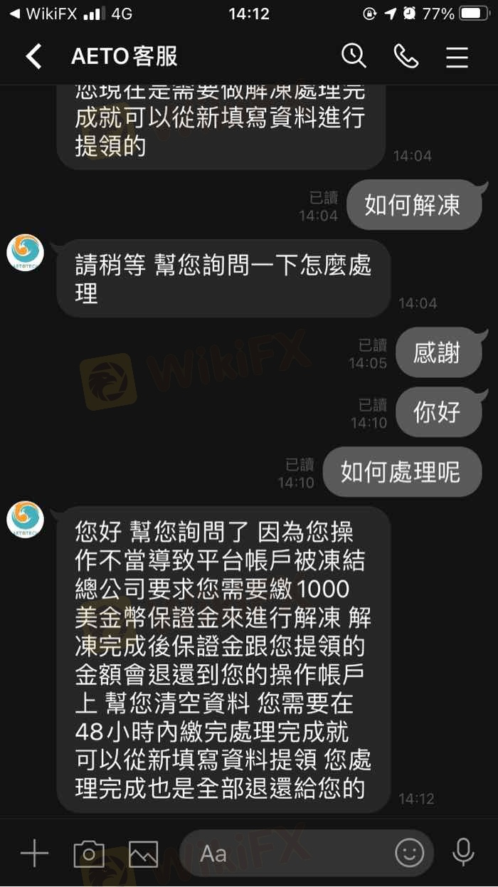竄改顧客帳戶資料,平台利用後台更改我的帳戶!導致無法順利出金匯款。 限時內需繳交保證金1000-5000美元