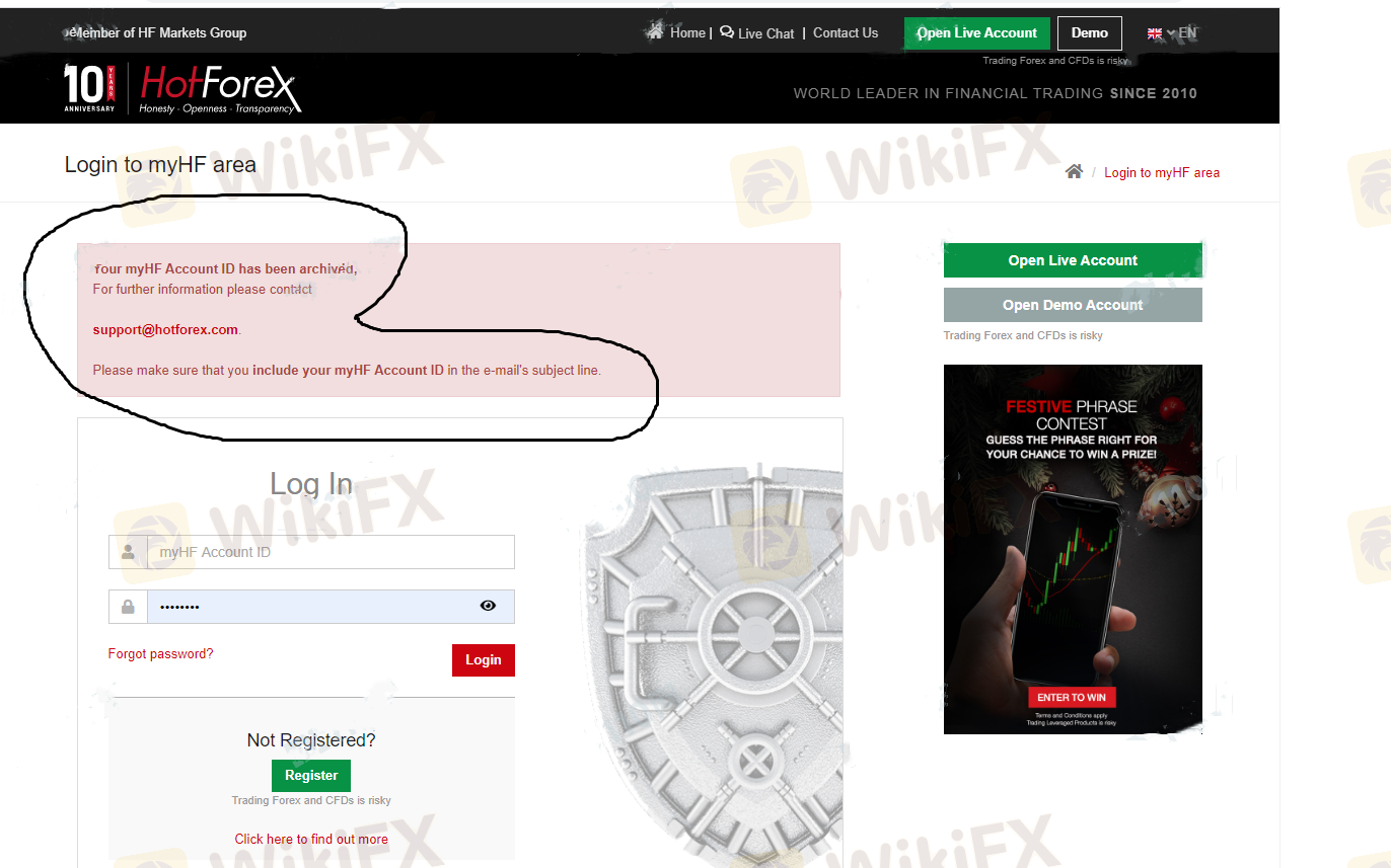 HotForex在没有事先通知的情况下关闭了我的帐户