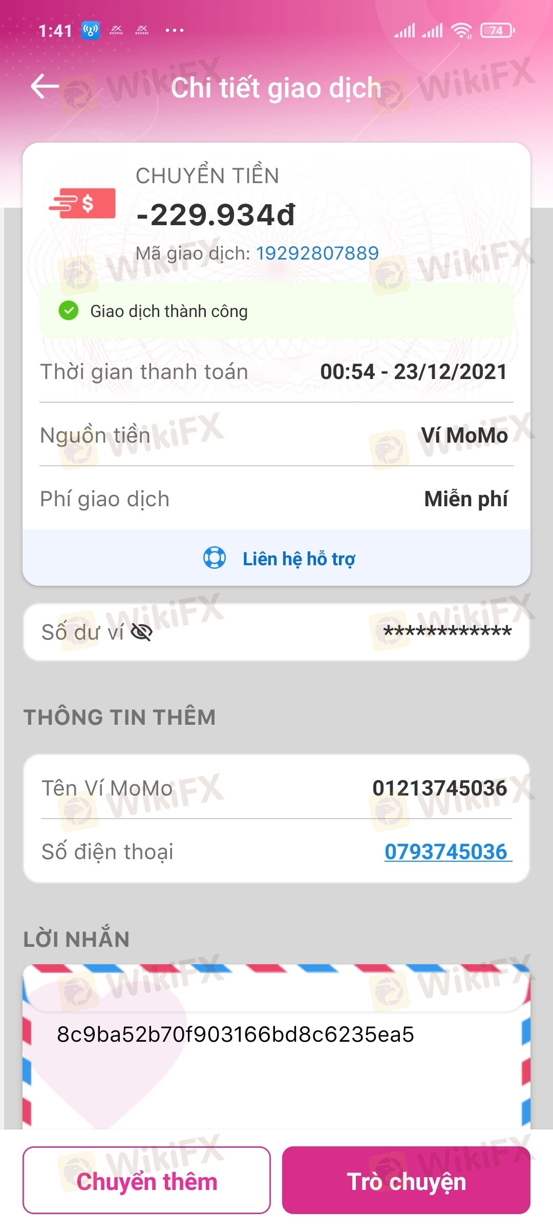 ngày nạp tiền vào sàn amega vào 00.45 ngày 23.12.2021 giao dịch qua momo vấn chưa nhận đc tiền mong sàn giả quết