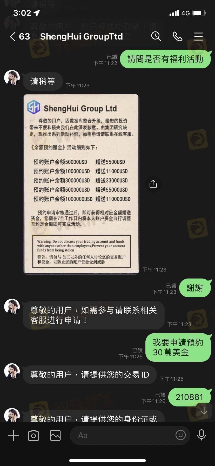我近期投資一個平台,ID: 210881,在網路上認識的人,要我參加他們的活動,儲值30萬美金贈送3萬3美金,他說會一起幫我完成,當時活動內容也沒有說明活動規則,然後我就跟朋友一起完成儲值任務後,客服人員說:「您账户存在多笔三方跨境资金存款,共计金额为:259000USD。按照国际金融管理条例规定,需要缴纳该笔资金5%所得税,共计为:12950USD,请您在申请提款后7个工作日内完成缴纳,缴纳后方可正常提款,逾期将产生高额滞纳金,并会对您的金融信誉造成影响,请按时纳税!」 依照台灣正常來說,稅金都是直接扣除後再給剩餘的錢(而且我也上網查過了),所以我要求從裡面扣除稅金 客服人員卻說:「我们是持有正规金融牌照的合法交易商,受到国际金融管理条例的严格监管,任何从用户账户划扣资金的行为都会受到金融监管部门严厉处罚甚至吊销金融牌照,因此我们无权从您的账户扣取税金。」 無奈之下我只能繳稅金,也詢問過客服是否只有這一筆繳款,客服也說是,繳完稅金後客服人員卻說總部覺得我有洗錢的嫌疑,但經過調查我沒有洗錢,卻損害他們的名譽,要罰款一萬美金,問題是一開始也沒有告知遊戲規則,然後又說我損害名譽,也拿不出損害名譽的證明,也不知道罰款金額是怎麼算的,我不知道如果繳完罰款後又會拿什麼理由一直要我繳款不給我提款,然後那位網友一直不斷要我投錢進去,還帶有一點威脅,但我真的沒錢也不願意再投錢時,他人也跟著消失了,希望大家不要再跟我一樣受騙