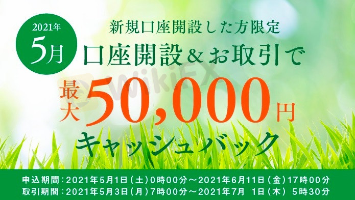 SBI FXトレードでは、2021年05月01日~ 06月11日の間に新規口座開設した人に取引高に応じて最大50,000円のキャッシュバックを開始しています。