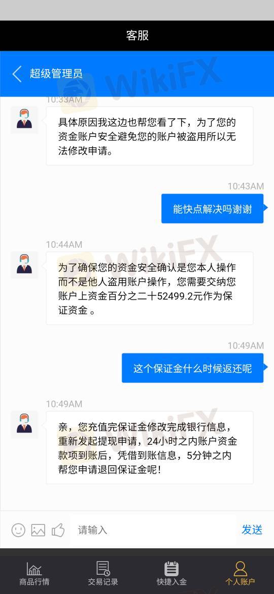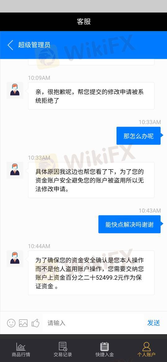 说我信息有误,客服说修改正确的信息,修改不了让我再交20%的保证金