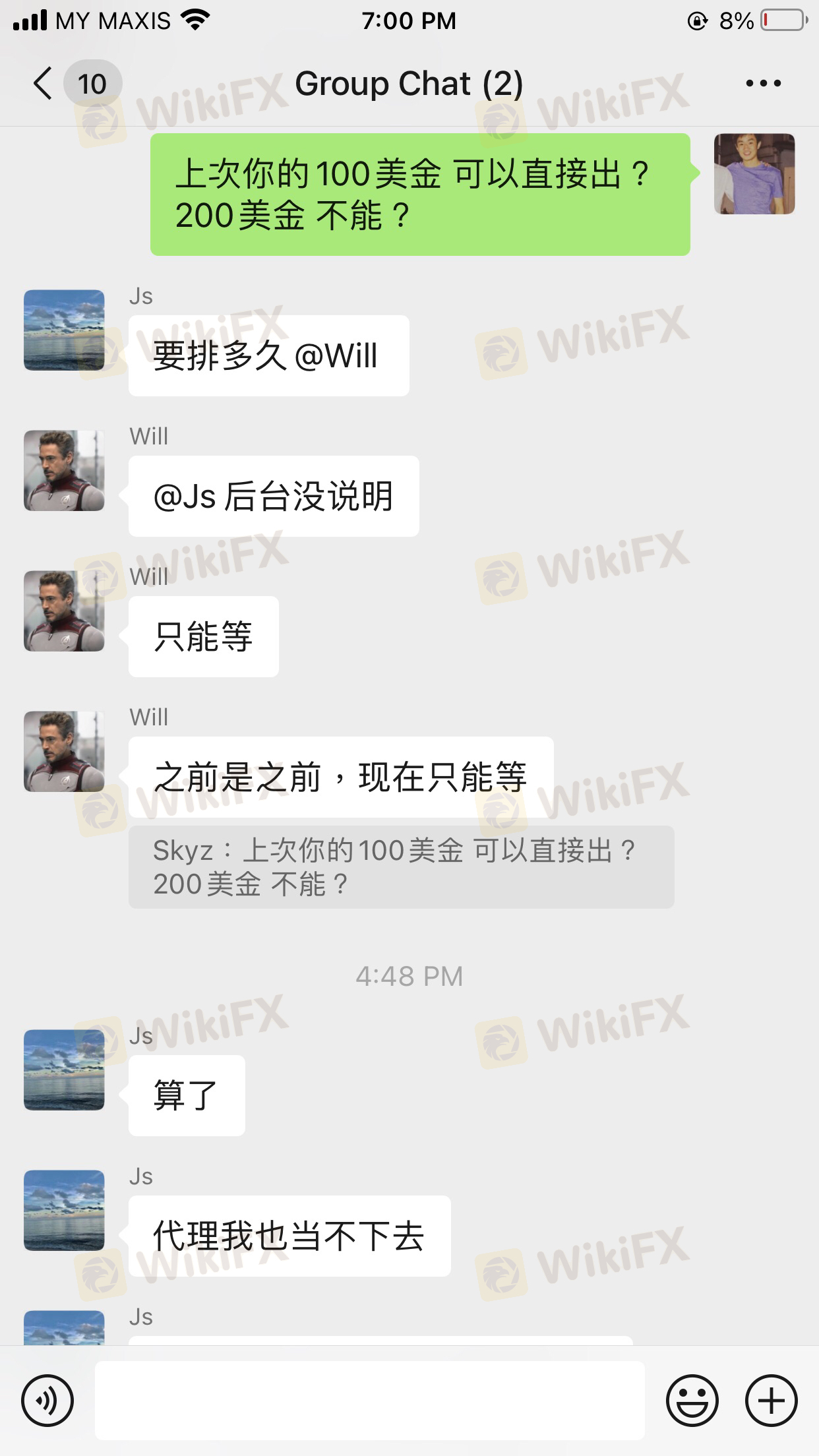 Я снял со своего счета 405USD, прошло два месяца, а я все еще не получил свои деньги. Сначала я вежливо просил службу поддержки клиентов и ответственное лицо примерно 10 раз сократить время вывода средств, они ответили мне своим типичным сценарием обслуживания клиентов, но никаких действий не предприняли. Ответственное лицо сказал, что если я хочу ускорить процесс отзыва, я должен ввести нового клиента вUSGFX , это афера Понци, весьUSGFX это афера. они обманули мои 405 долларов США
