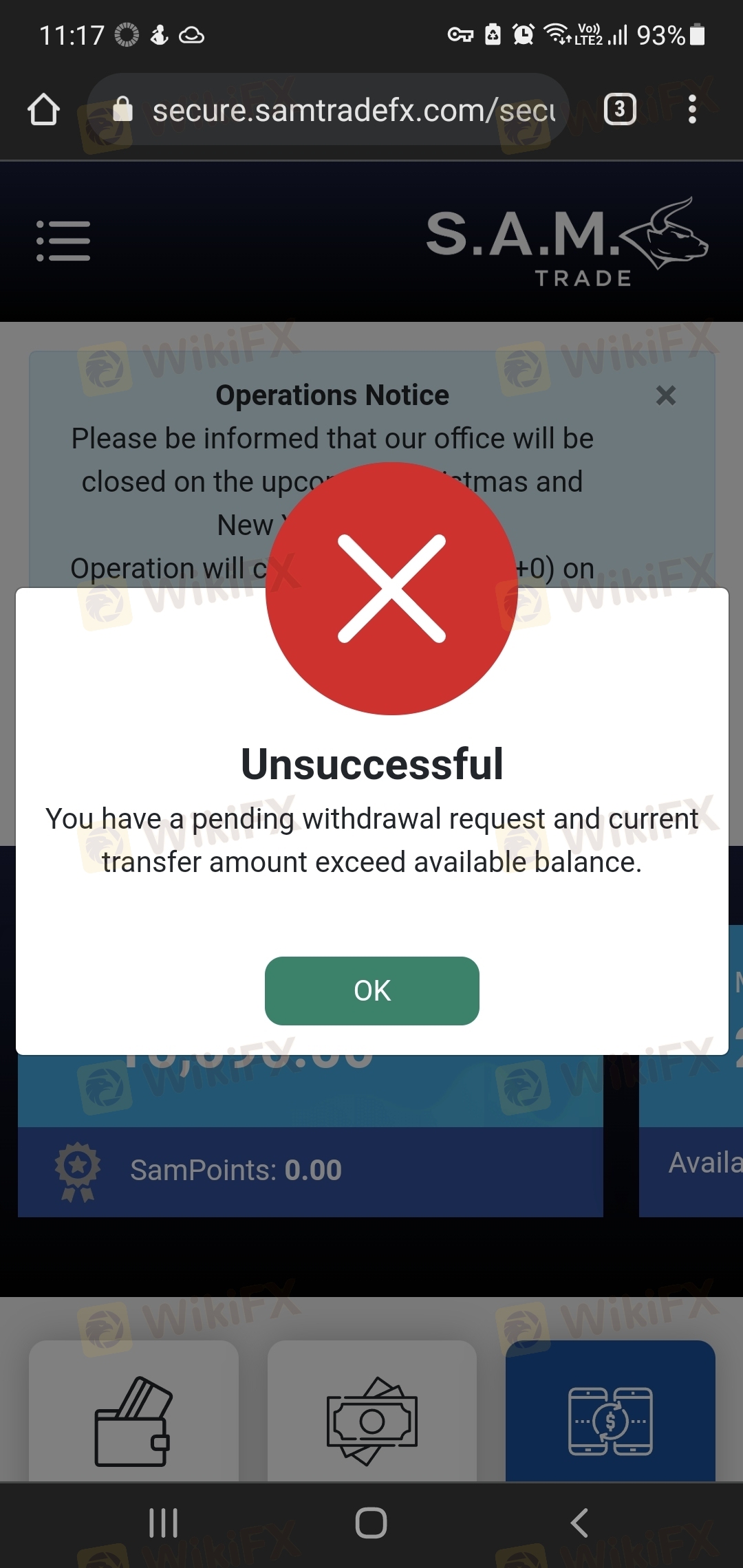 Due investigated by MAS, S.A.M Trade Unable to WD