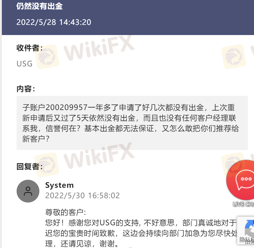 子账户200209957一年多了申请了好几次都没有出金,上次重新申请后又过了15天依然没有出金,照会发了好几封,一直打官腔,客户经理要求必须交易再100手才给出金,我不同意,都赔了,剩个底子,再也不会交易了!不但不出金反而以不交易收取滞纳金为由扣了5美金,这还有天理吗?
