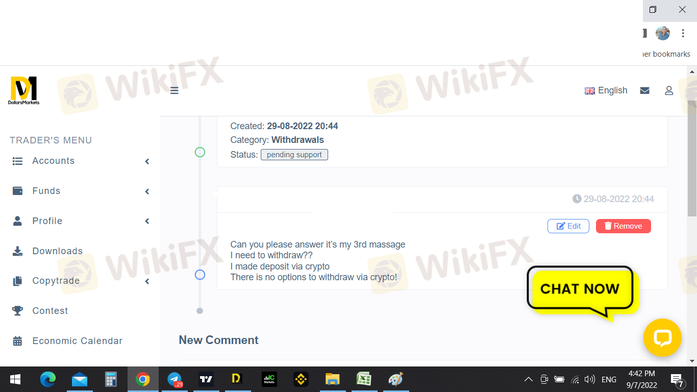 Этот брокер - мошенник, сначала я спросил их о депонировании и снятии средств, и они ответили: снятие средств через 48 часов через крипто!! Затем я сделал депозит через крипто, торгую и выиграл, но я не могу найти никаких вариантов вывода средств на веб-сайте !!!! я начните общаться и попросите их вывести средства более 4 раз, и ничего не происходит каждый раз, когда они говорят, что есть задержка на стороне провайдера!!! более 1 месяца ожидания и, наконец, нет ответа, я написал 4 сообщения в службу поддержки, но режим ожидания для более 1 месяца !!! и вдруг они меняют мое кредитное плечо и не отвечают на мое сообщение.. очень плохой опыт, теперь я открываю позиции, чтобы потерять все средства, будьте внимательны, не вкладывайте свои деньги и не торгуйте с ними.