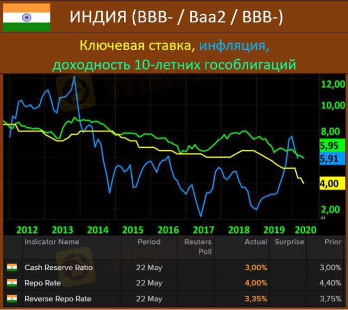 Индия: Решение Резерв. Банка Индии по проц. ставке, 4%, ожидалось 4%...