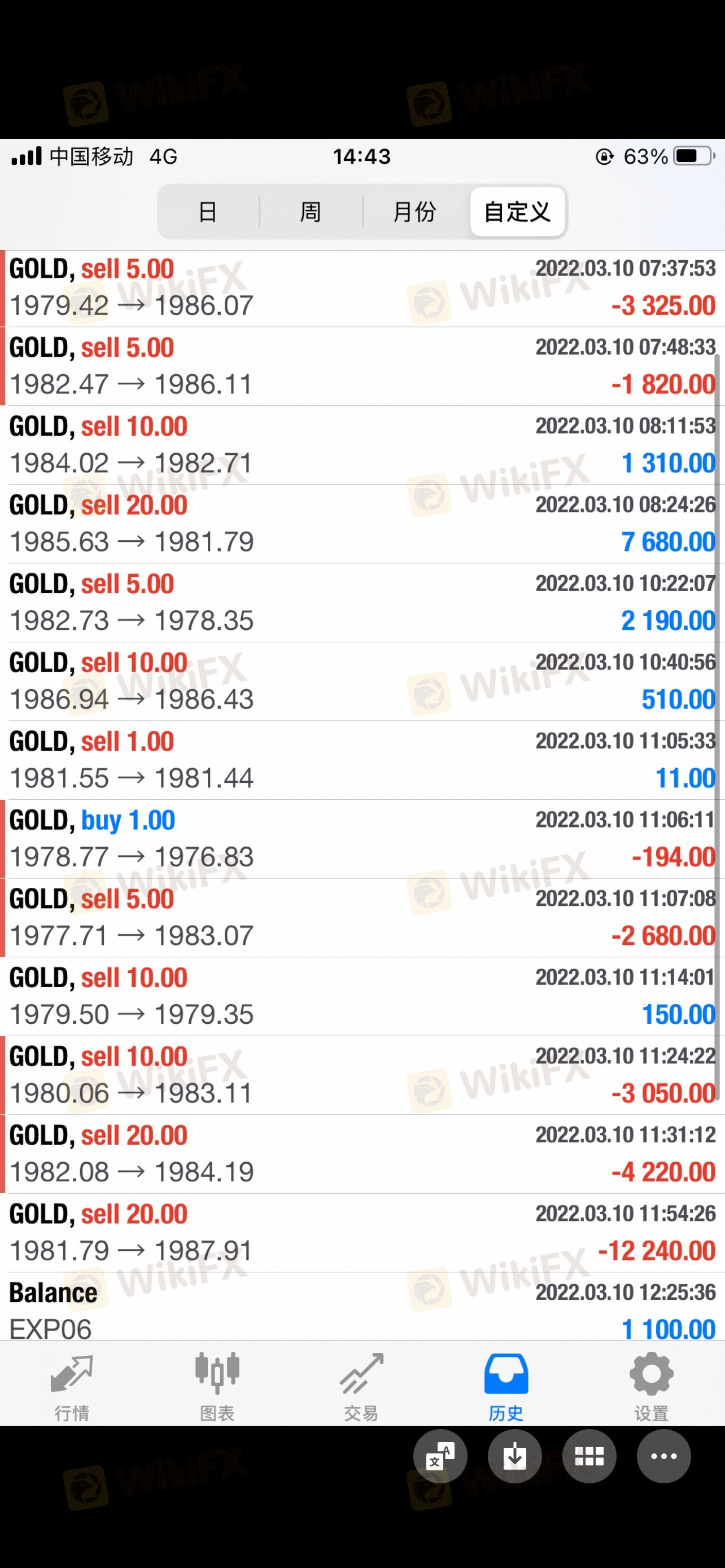 ผมเป็นน้องใหม่ที่เพิ่งเข้ามาในวงการนี้ ฉันพบผู้จัดการบัญชีของอดีตบนอินเทอร์เน็ต และริเริ่มที่จะติดต่อฉันเพื่อพาฉันไปสั่งซื้อ ในตอนแรกมันเป็นมือแรกทั้งหมด หลังจากสองวันของคำสั่ง เขาบอกว่าจะช่วยฉันซื้อขาย และทุกครั้งที่ฉันฝากเงิน 10,000 หยวน ดอลลาร์สหรัฐ แล้ววางคำสั่ง 10 ล็อต ครั้งละ 20 ล็อต ซึ่งทำให้บัญชีของฉันถูกชำระบัญชี 5 -6 ครั้ง ครั้งสุดท้ายที่ฉันบอกว่าฉันจะไม่ทำการสั่งซื้อด้วยตนเองและต้องการซื้อระบบอัตโนมัติของ ea เพื่อใช้งาน เขายังบอกด้วยว่าเขามี ea ที่สามารถใช้ได้ สำหรับฉันมันเป็นกำไร 55 เซ็นต์ ถ้าคุณสูญเสียมากเท่าที่คุณสูญเสีย เขาจะจ่ายให้ฉันเท่าไหร่ ดังนั้นเขาจึงดำเนินการบนคอมพิวเตอร์และให้ฉันฝากเงิน 11,000 ดอลลาร์สหรัฐ แต่หลังจากที่ฉันฝากเงินแล้ว เขาบอกฉันว่าอย่าเปิดบัญชีอีก เพราะ ea กำลังทำงานอยู่ และฉันกลัวว่ามันจะส่งผลต่อการทำงานในเบื้องหลังหากฉันเปิดมันขึ้นมา ! ฉันเปิดบัญชี mt4 ทันที และพบว่าเงินในบัญชีของฉันกลายเป็น 0 และเขาก็วางคำสั่งด้วยตนเอง ซึ่งส่งผลให้มีการชำระสถานะหลังจากวางคำสั่งครั้งละ 10 คำสั่ง! ฉันโกรธมากและขอให้เขาชดเชยความสูญเสียของฉัน! เขาบอกว่าจะจ่ายคืนให้ฉัน แต่ตอนนี้ผ่านไปครึ่งปีแล้ว เขาจ่ายเงินให้ฉันแค่ 1,000 ดอลลาร์ใน 3 เดือนแรก แล้วเขาก็ปฏิเสธที่จะชดเชยให้ฉันด้วยข้อแก้ตัวต่างๆ ตอนนี้ฉันต้องการเงินอย่างเร่งด่วน และเขาก็ไม่ตอบ ไม่รับโทรศัพท์! และฉันได้รับข้อความอีเมลแจ้งว่าเขาลาออกแล้ว!