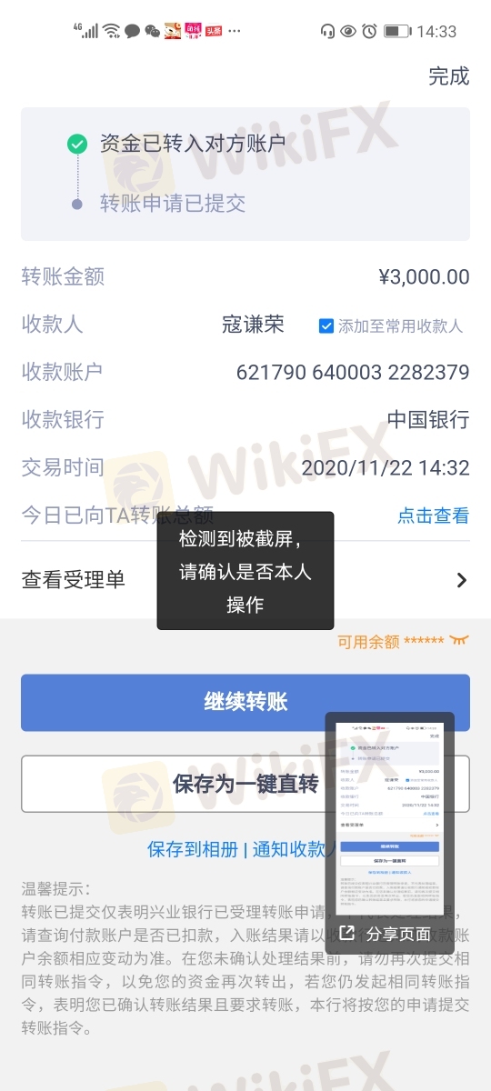 Tôi không thể rút tiền. Tôi đã đầu tư 60.000 nhân dân tệ vàoEverbright Securities và tạo ra lợi nhuận là 21376 nhân dân tệ. Khi tôi rút 81376 nhân dân tệ, tôi không thể. Tôi được thông báo rằng số thẻ ngân hàng của tôi bị sai và tôi cần phải trả 50%. Và họ cũng đóng băng tài khoản của tôi.