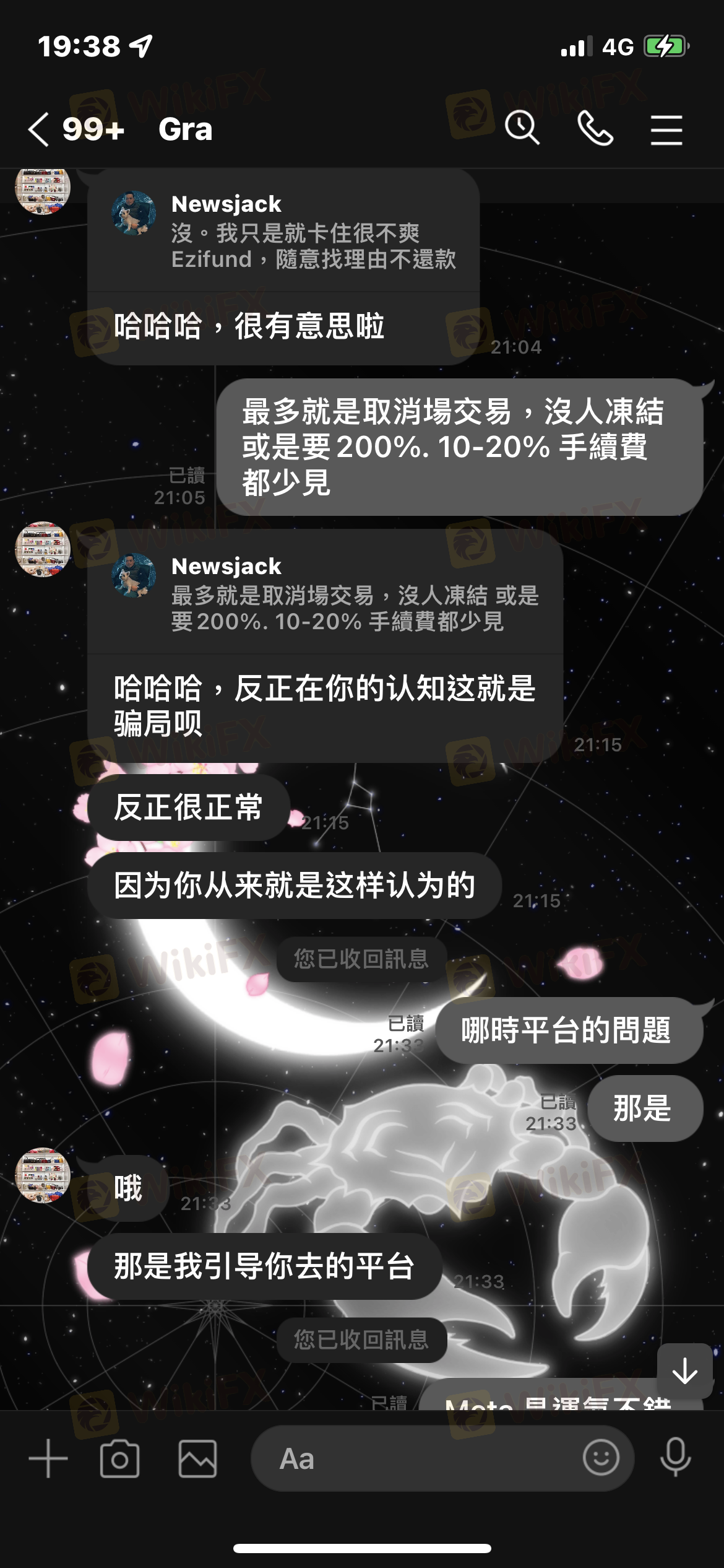 在IG 認識的網友,有天突然開始提到MetaTrader5,後來接到亞洲區業務要關閉。開始下載的Ezifund. 期間一天獲利平均5-10%。對方嘗試帶我開合約跟槓桿但我拒絕。自然會被兇。接著因為跟朋友吵架。所以,嘗試出金。接著就是說因為違規所以,要200%的解凍金。真的是不經一事 不長一智